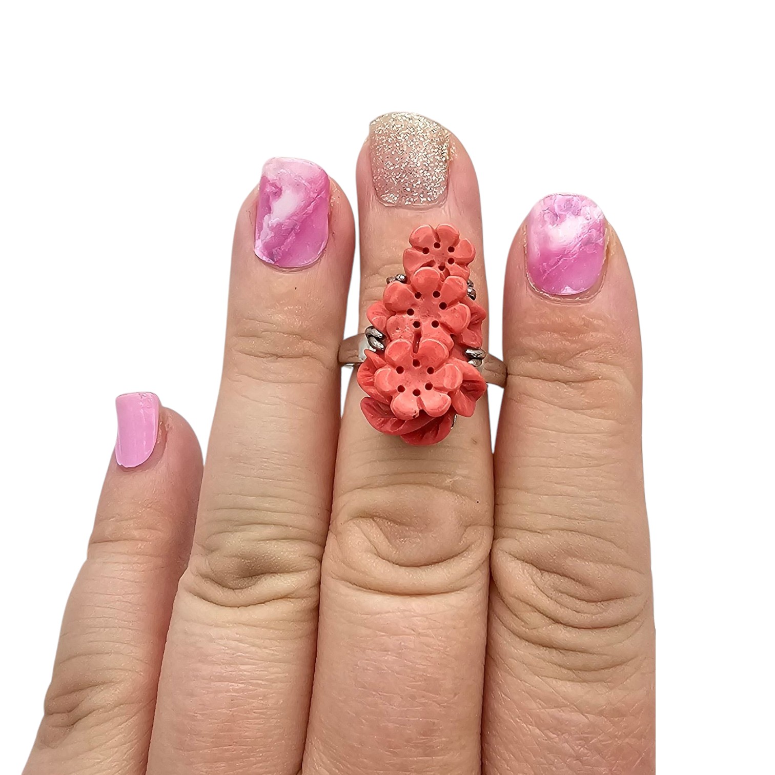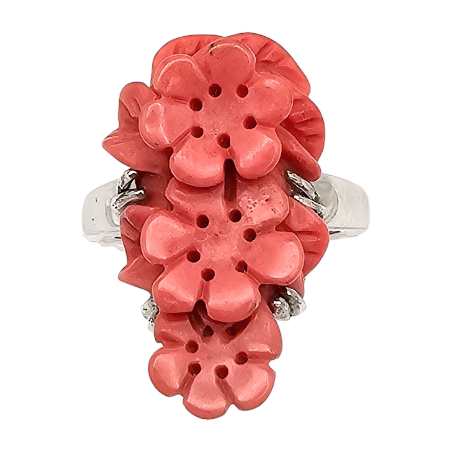 BBJ Carved Coral Sterling Silver Ring Size 6 6.9 G
