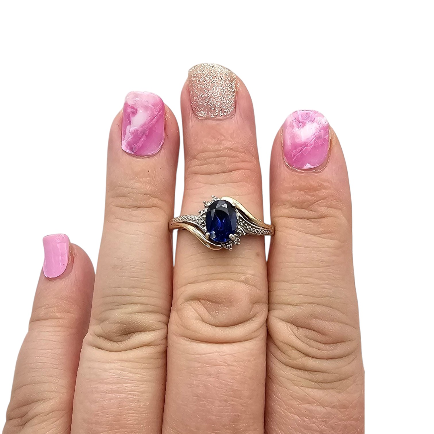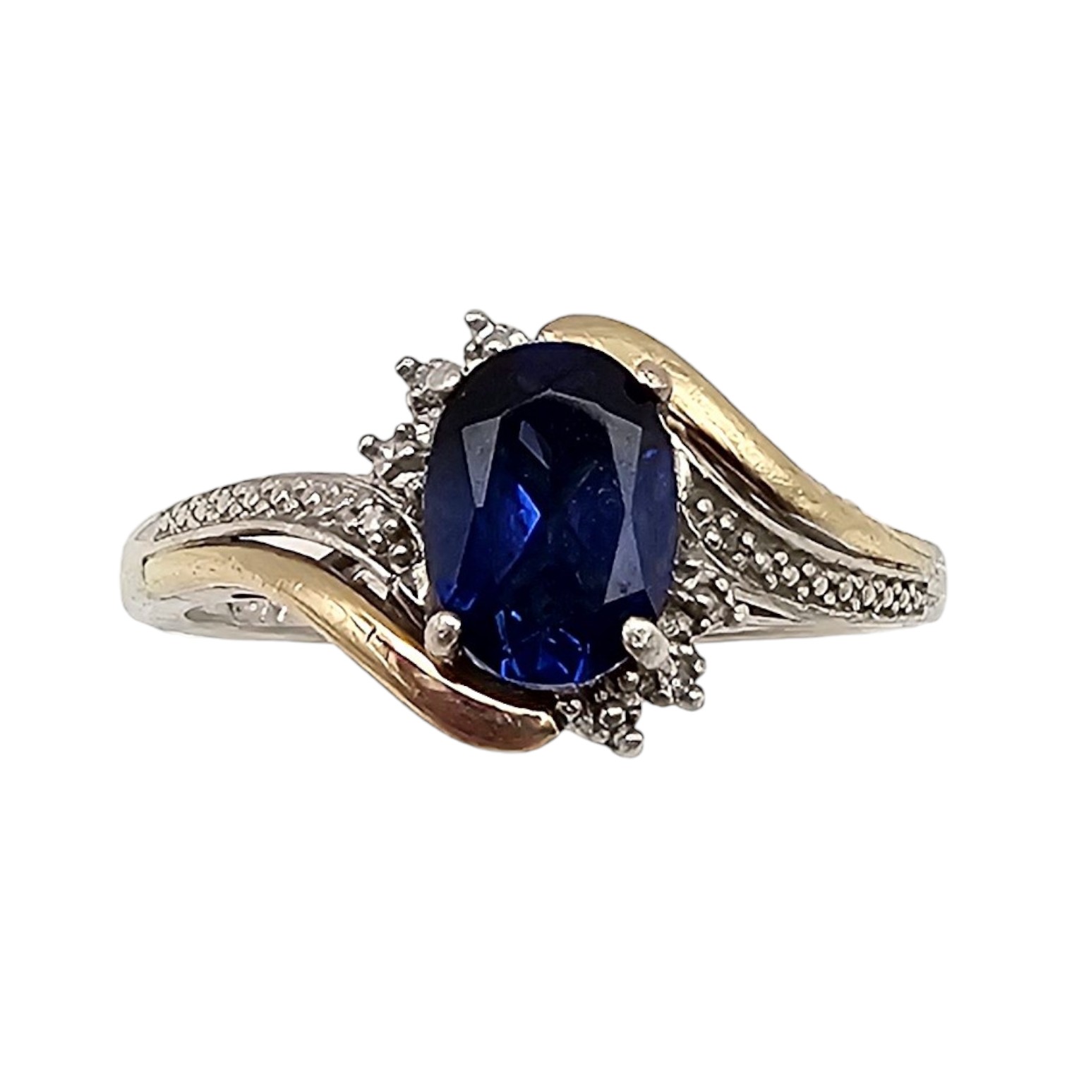 AJ Sapphire 10K Gold Sterling Silver Cocktail Ring Size 5.5 3.3 G Bent Band