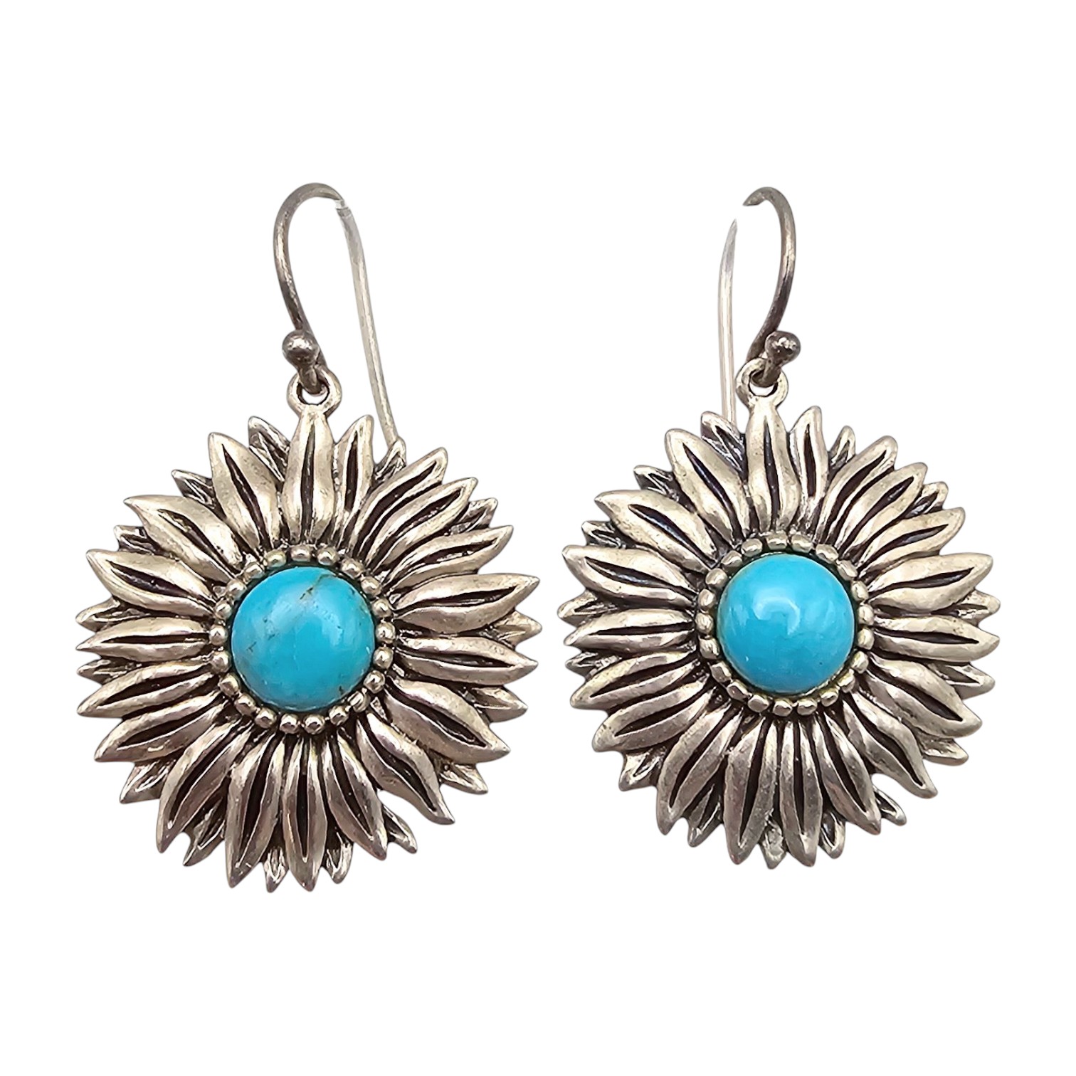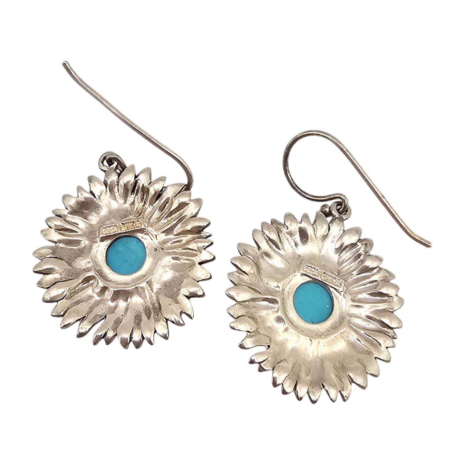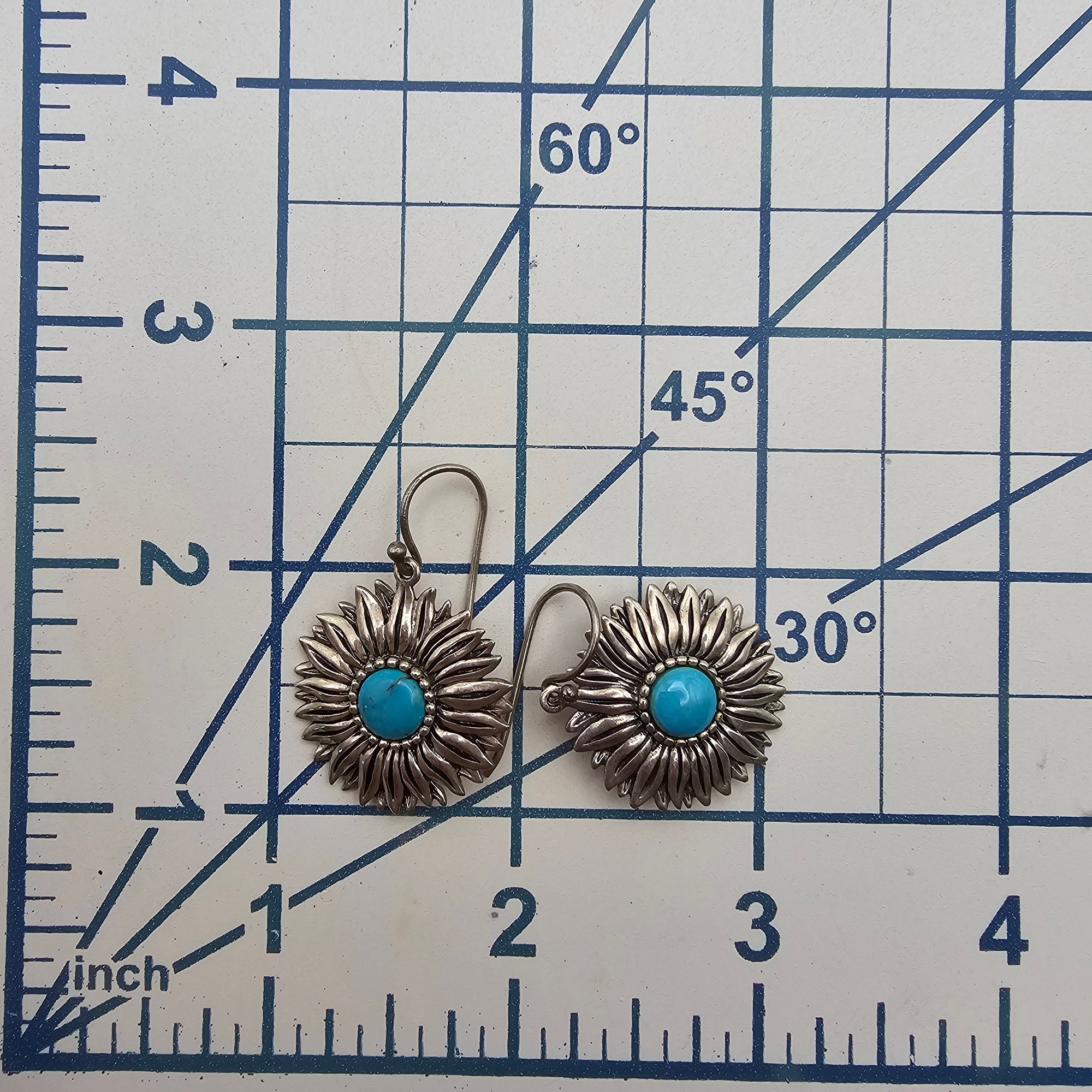 Turquoise Sterling Silver Flower Drop Dangle Earrings 8.3 G