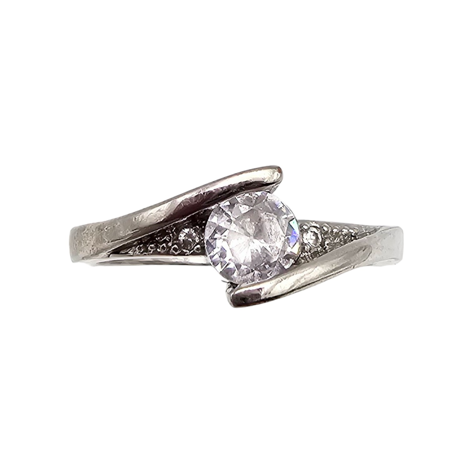 Rhinestone Sterling Silver Cocktail Ring Size 6.25 2.4 G