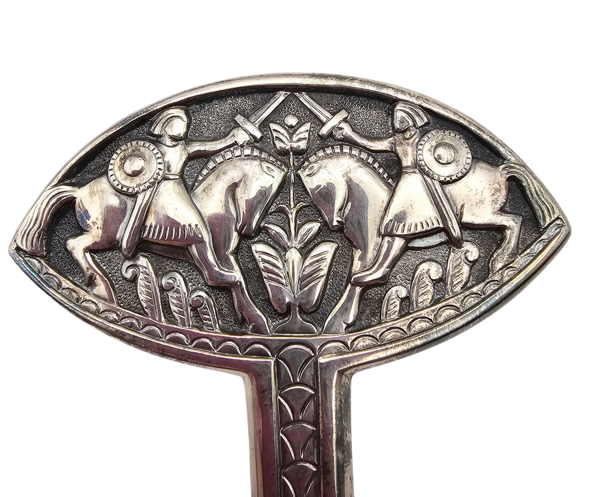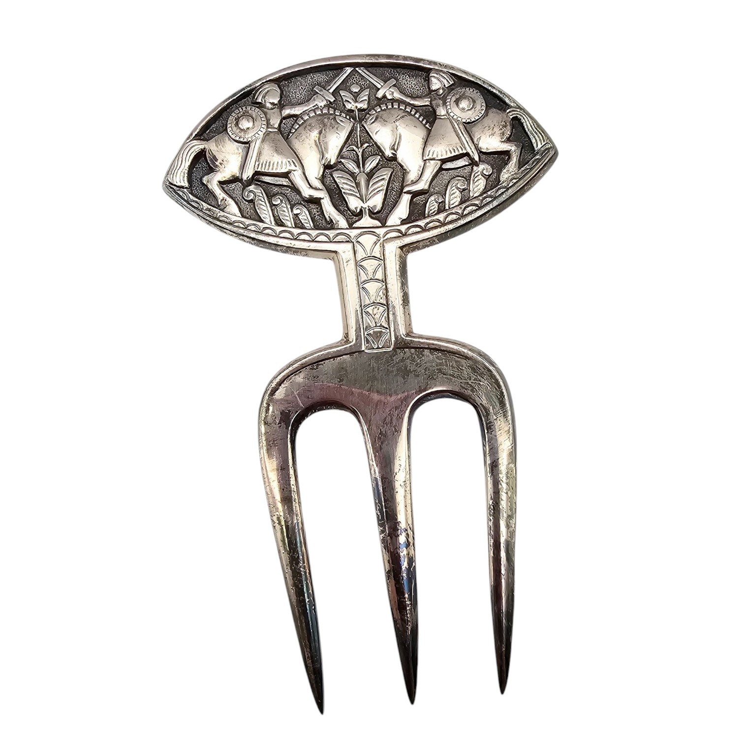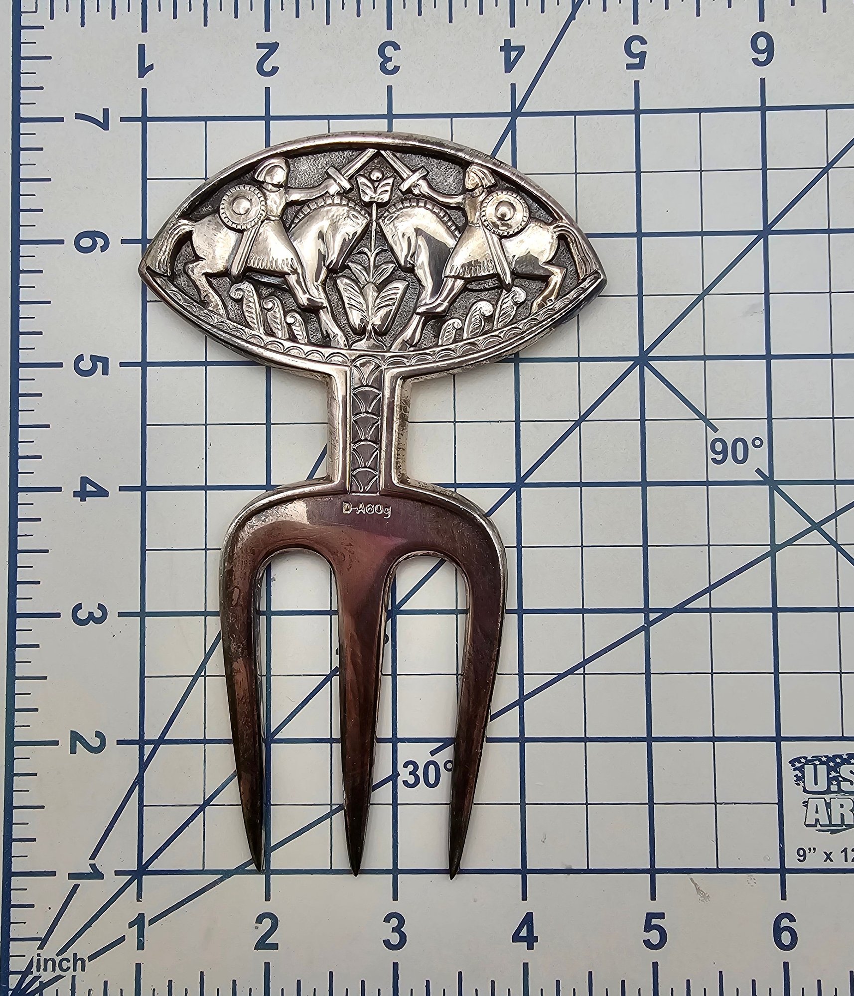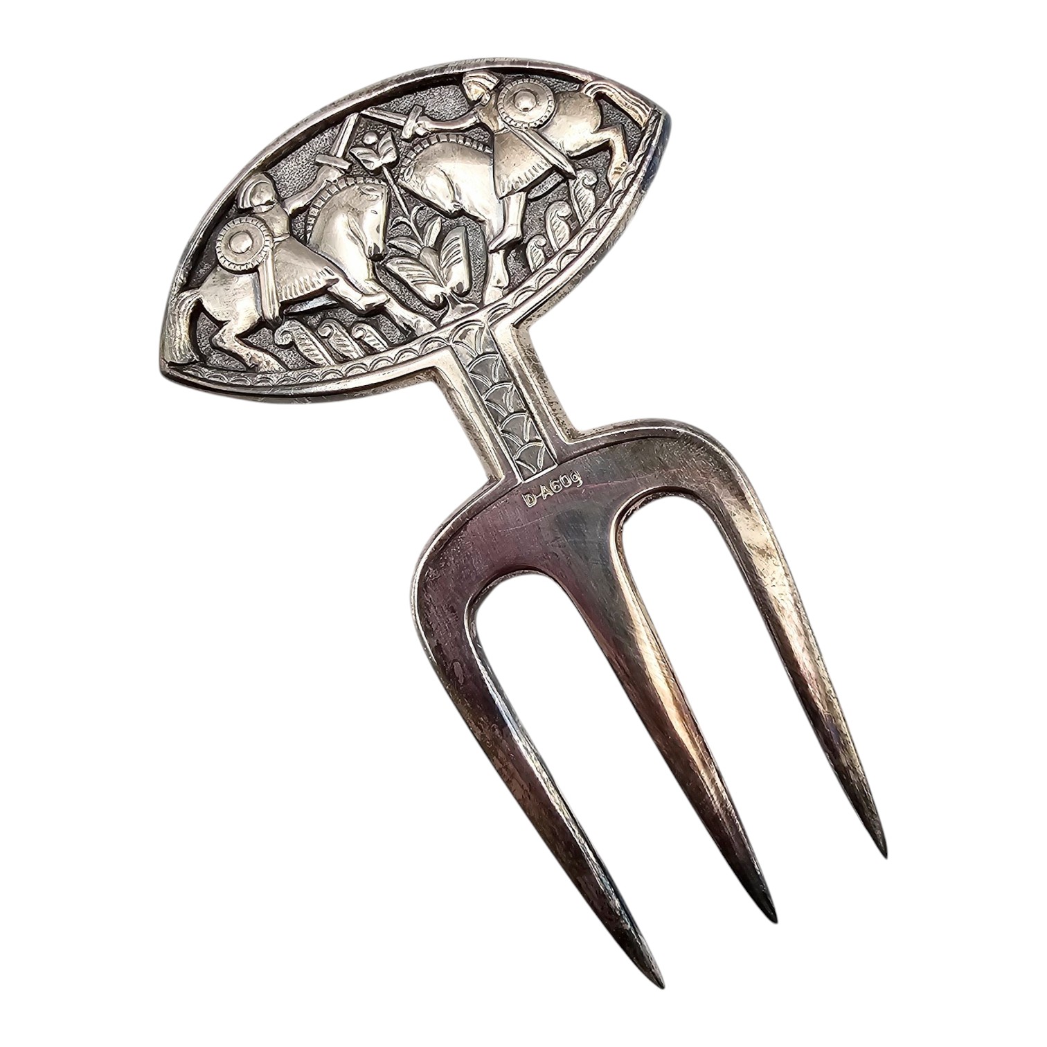 David Andersen Silver Plate Viking Motif Meat Bread Fork 230.4 G