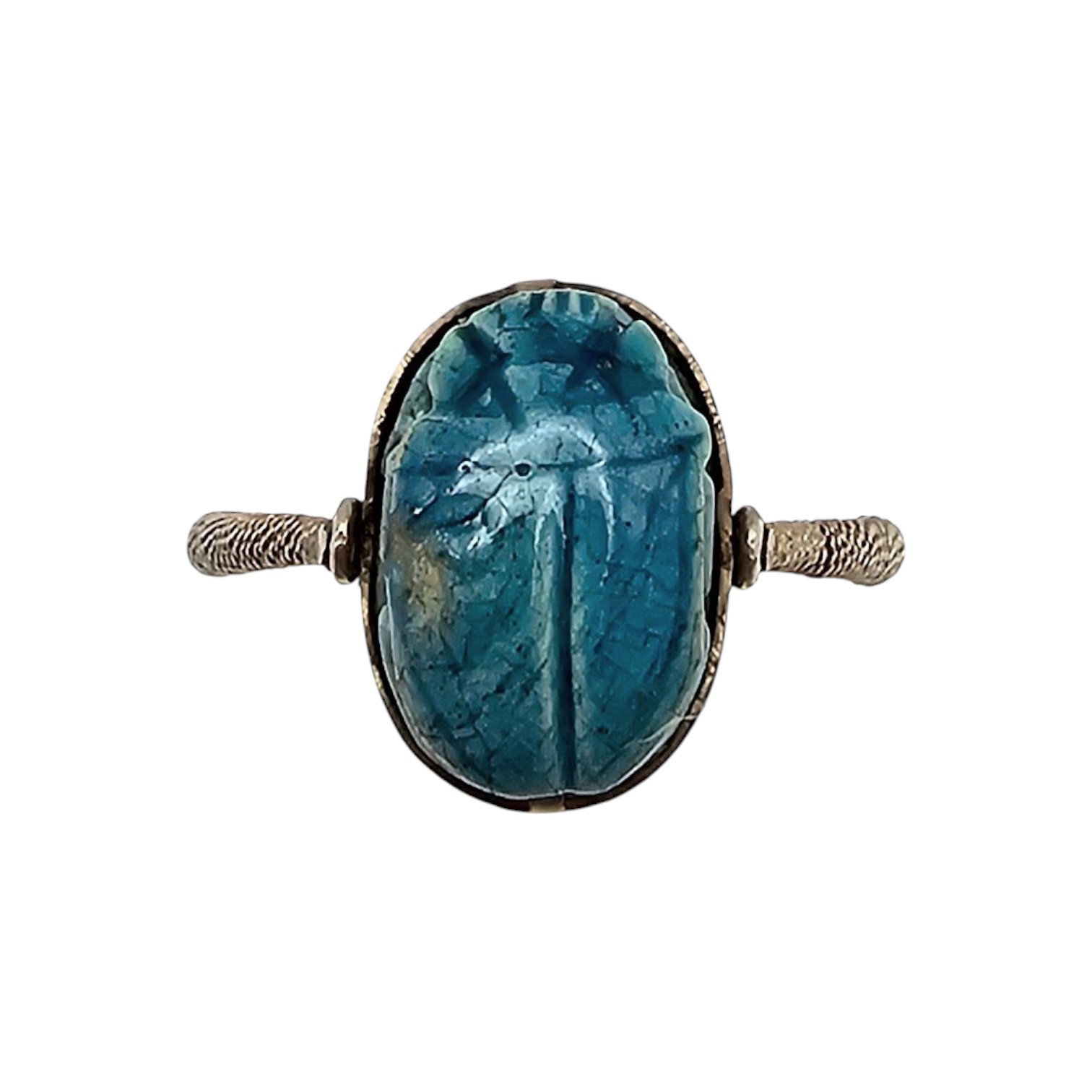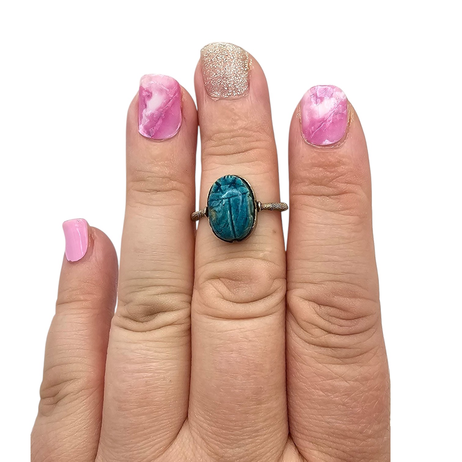 Egyptian Revival Carved Scarab Sterling Silver Ring Size 6.75 2.4 G