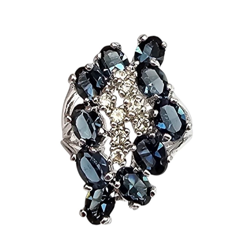 Rhinestone Sterling Silver Cocktail Ring Size 7.75 7.2 G