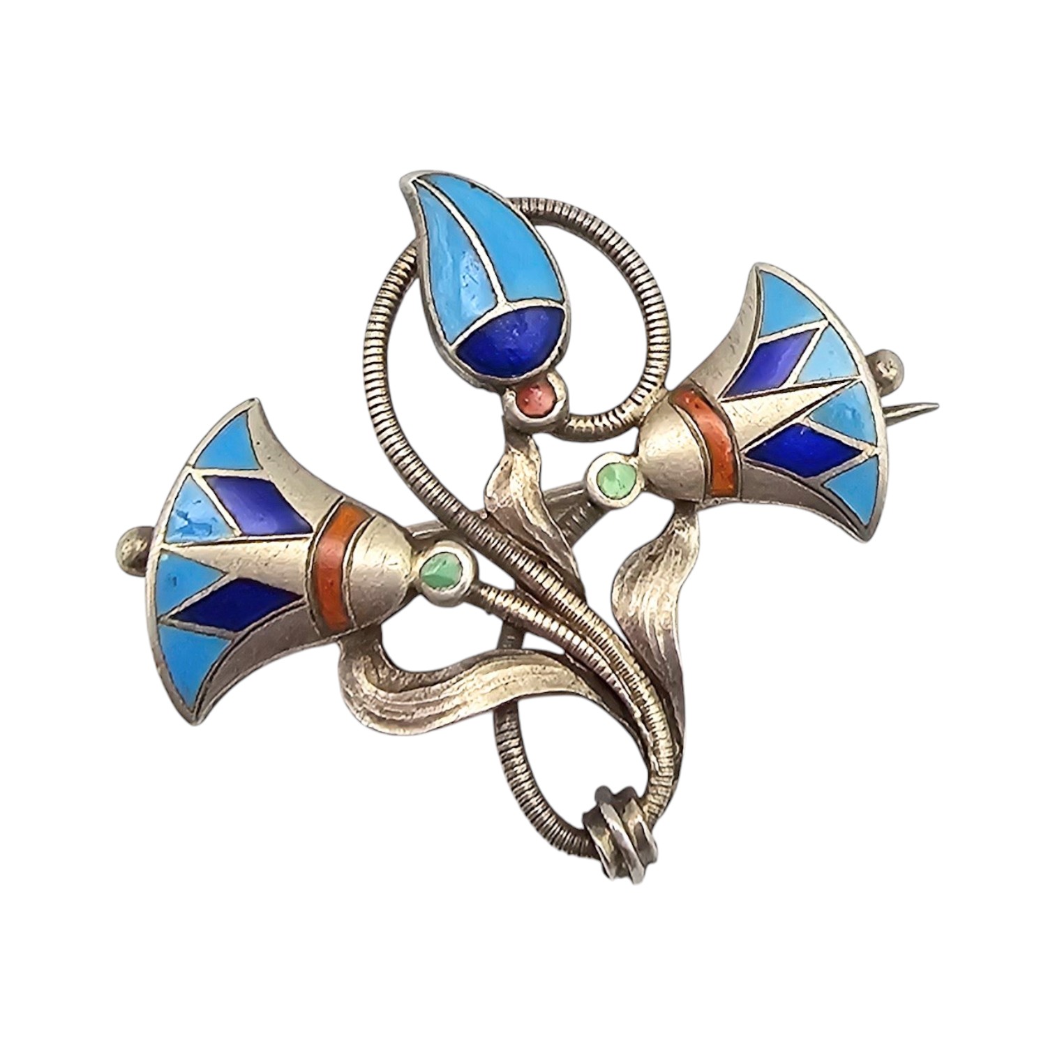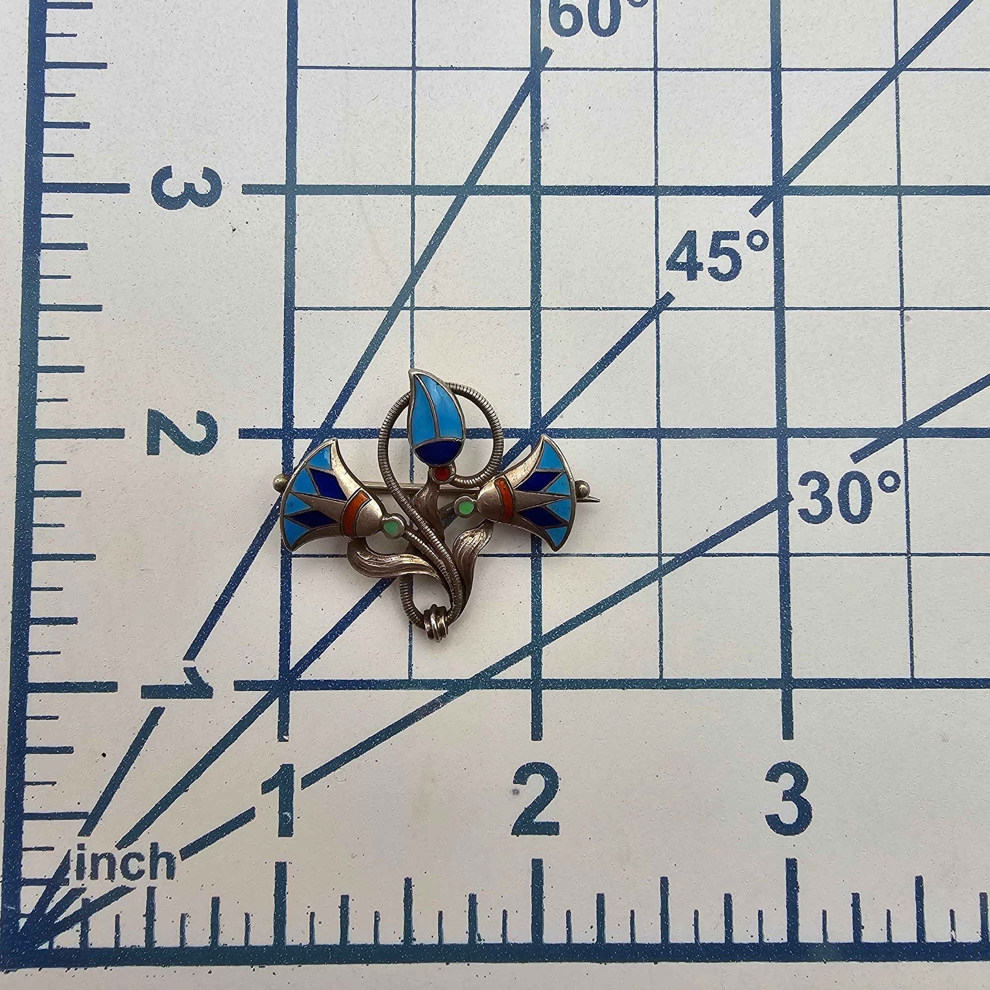 Enamel Sterling Silver Egyptian Revival Brooch 5.4 G