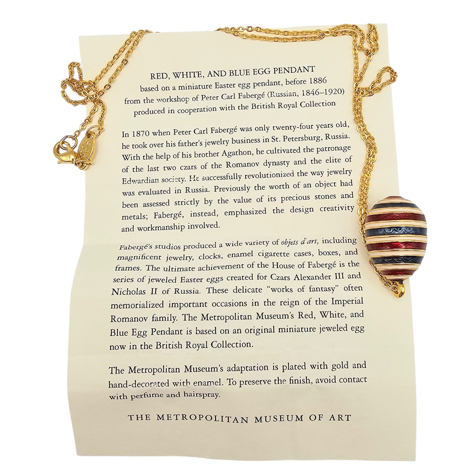 Peter Carl Faberge Enamel Gold Tone Egg Necklace Metropolitan Museum of Art Recreation