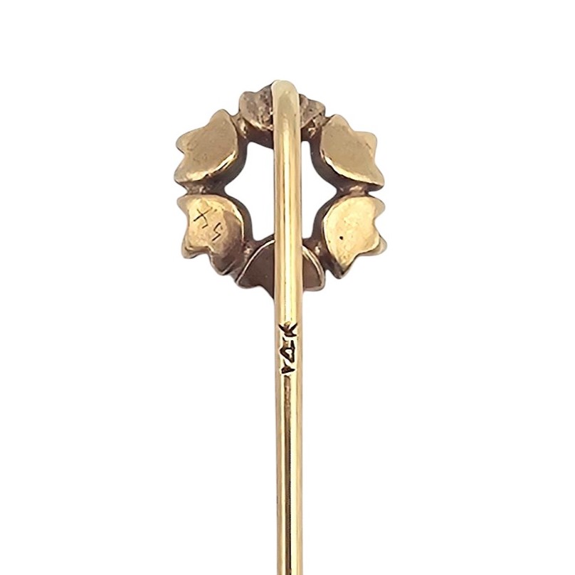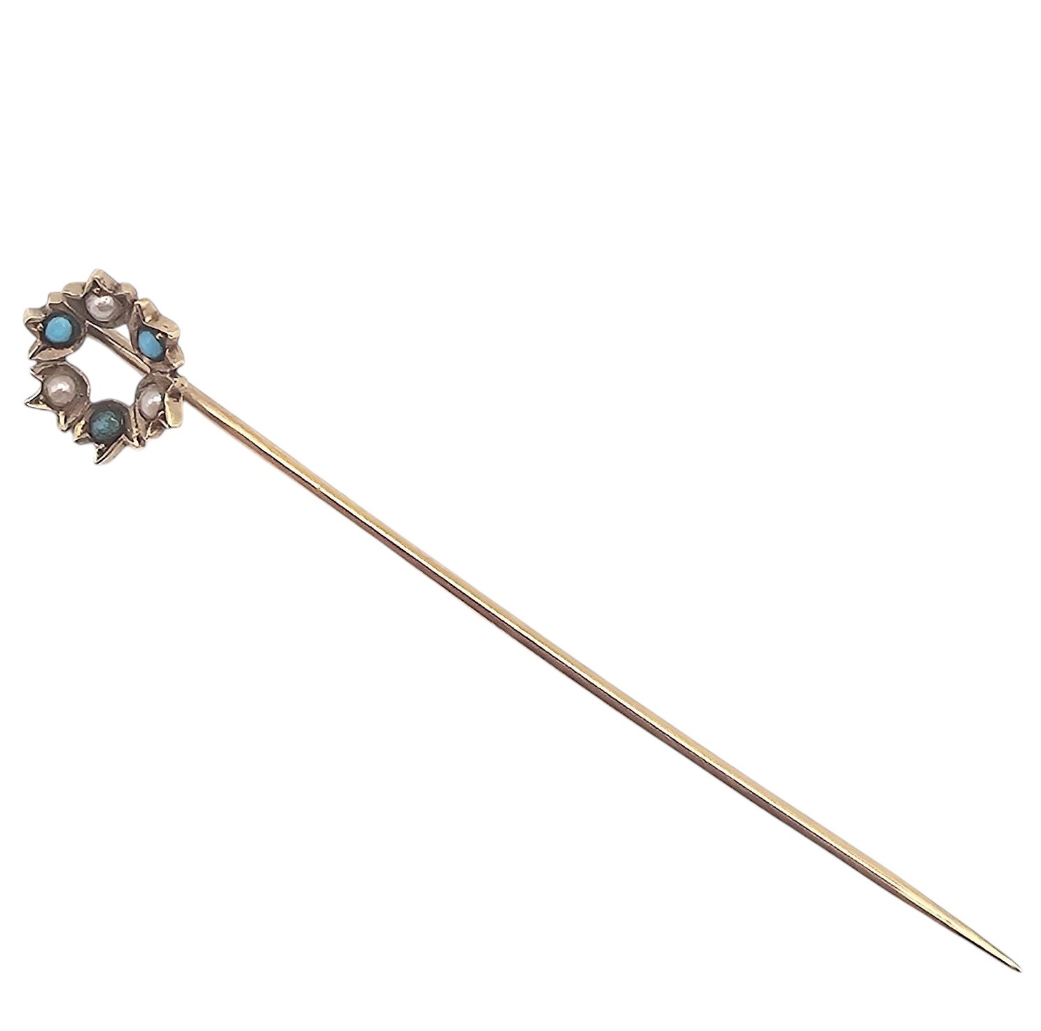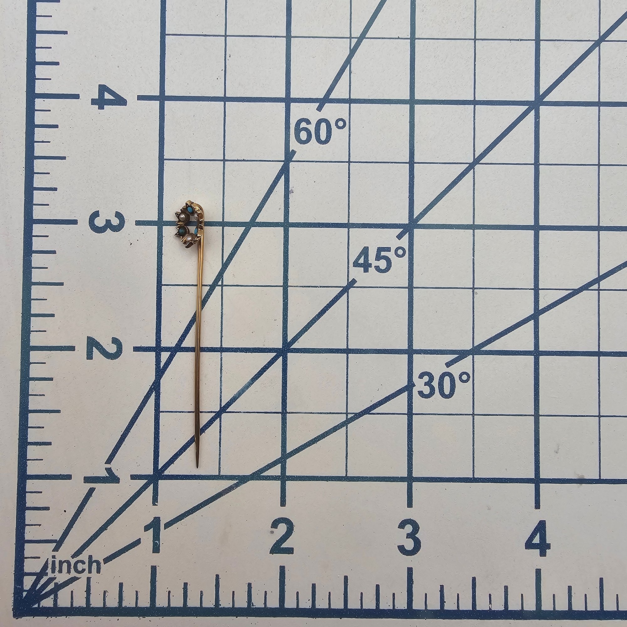 Turquoise Seed Pearl 14K Gold Lapel Pin 1.1 G
