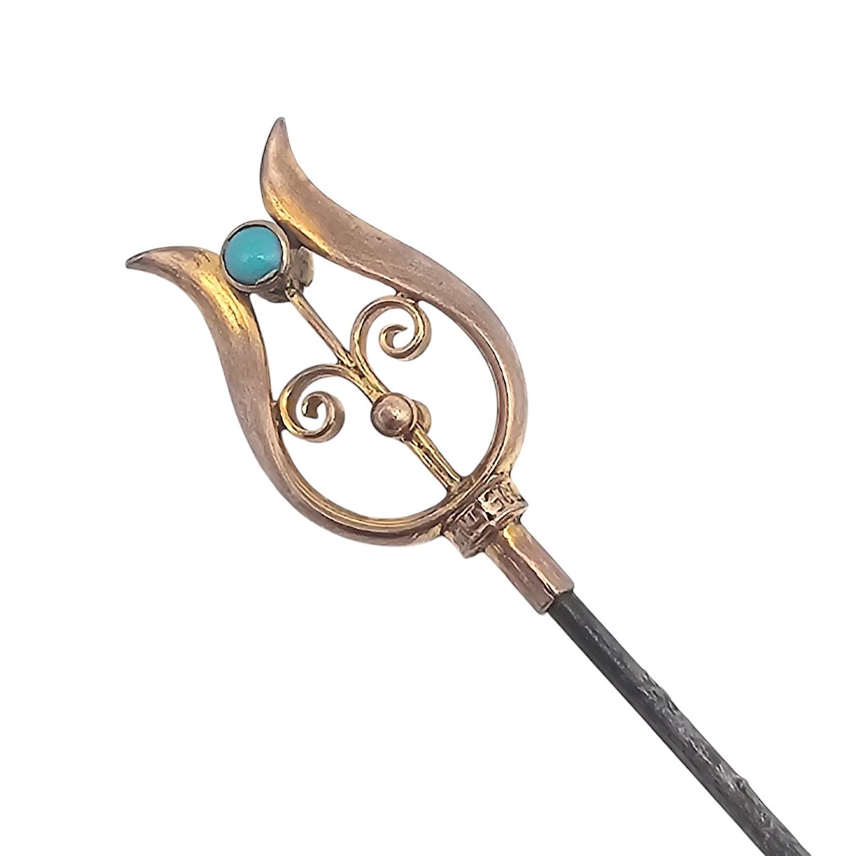 Vintage Turquoise 14K Gold Hat Pin 2.1 G
