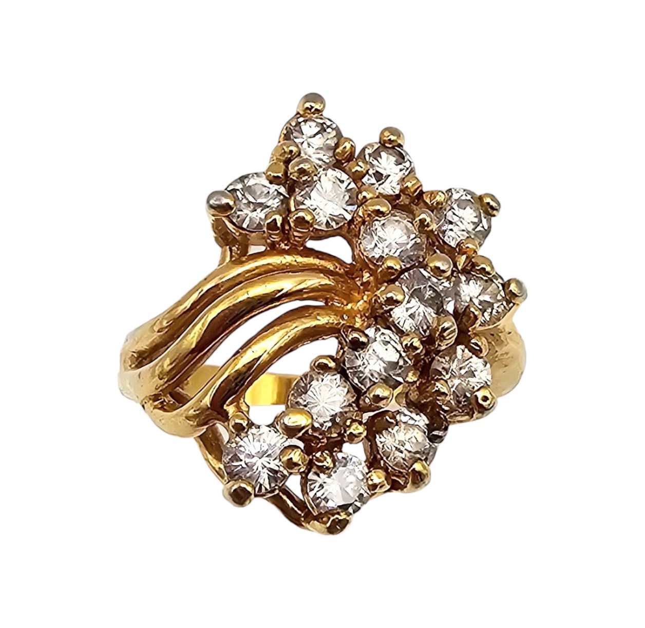AFJ Rhinestone Gold Over Sterling Silver Cocktail Ring Size 4.5 6 G