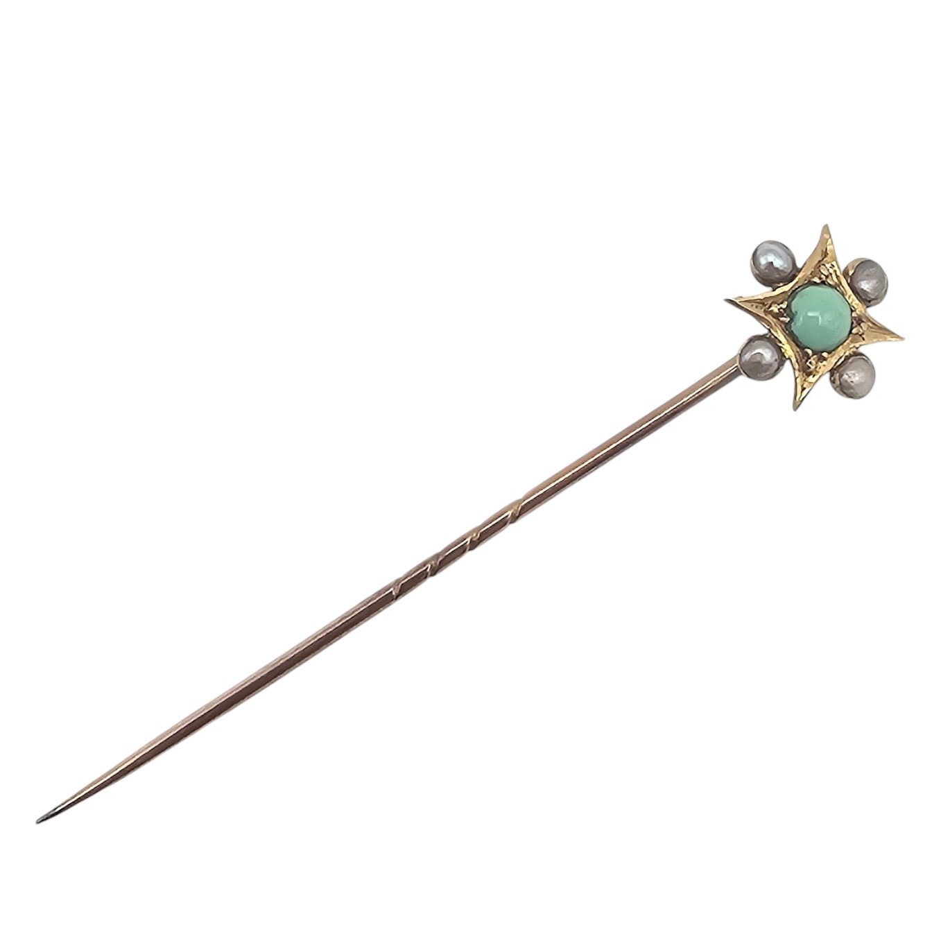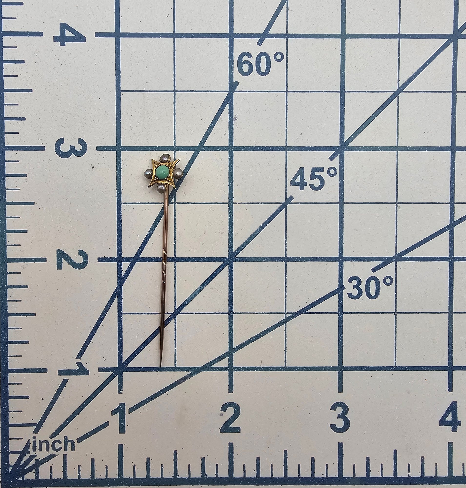 5 CT Turquoise Seed Pearl 14K Gold Lapel Pin 0.7 G