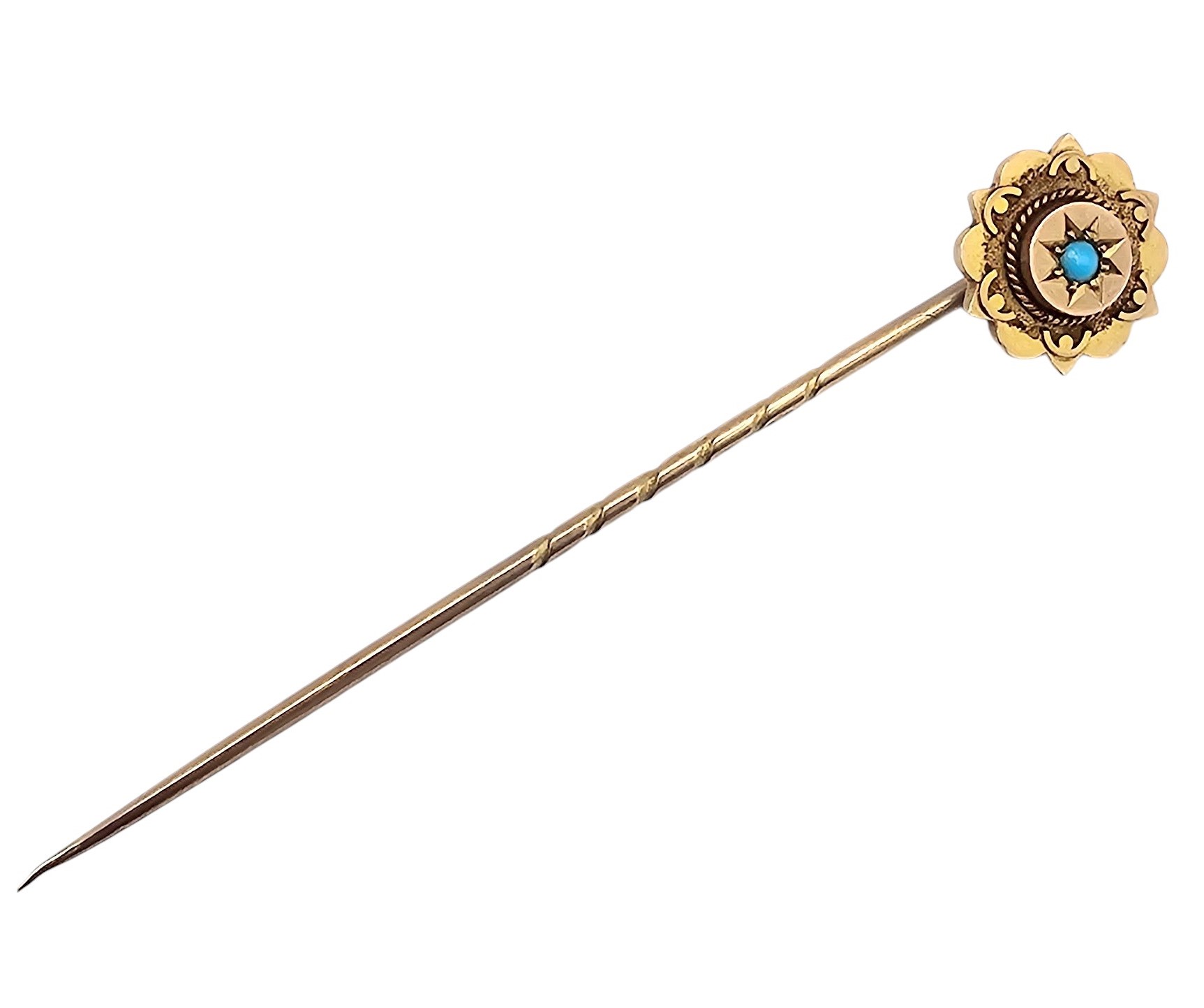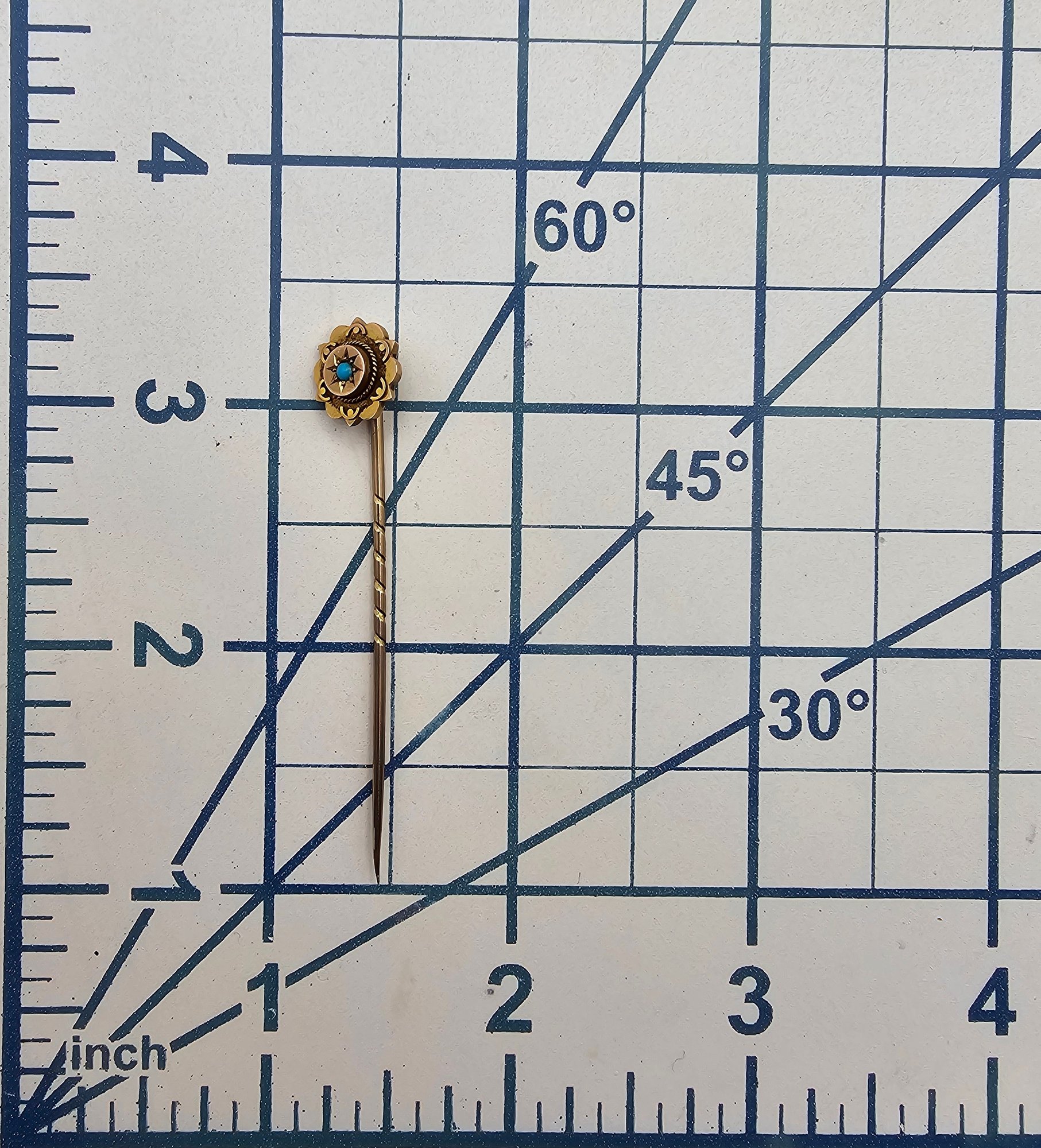 Signed Turquoise 14K Gold Lapel Pin 1.4 G