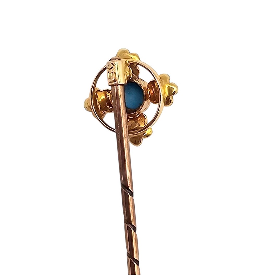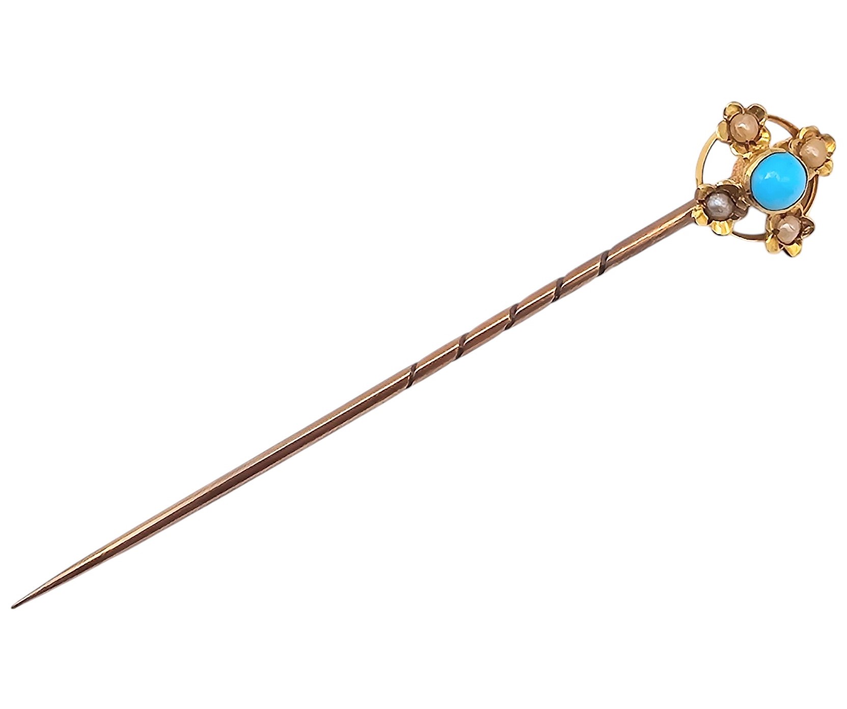 Vintage 5 C Turquoise Seed Pearl 10K Gold Lapel Pin 1.2 G