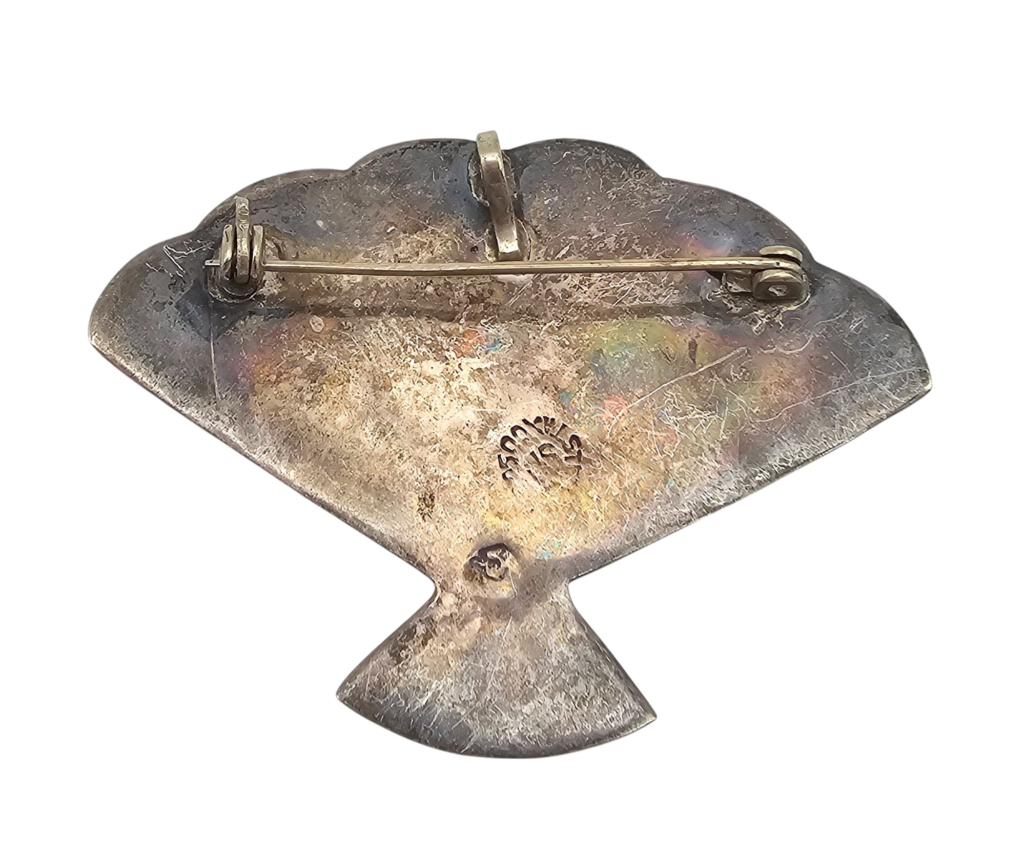 Mexico Abalone Sterling Silver Fan Brooch Pendant 9.6 G