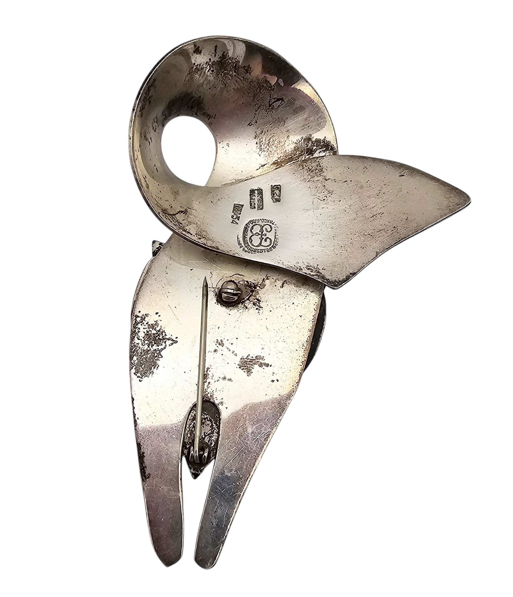 Mexico Signed Sterling Silver Coyote/Wolf Brooch 36.4 G