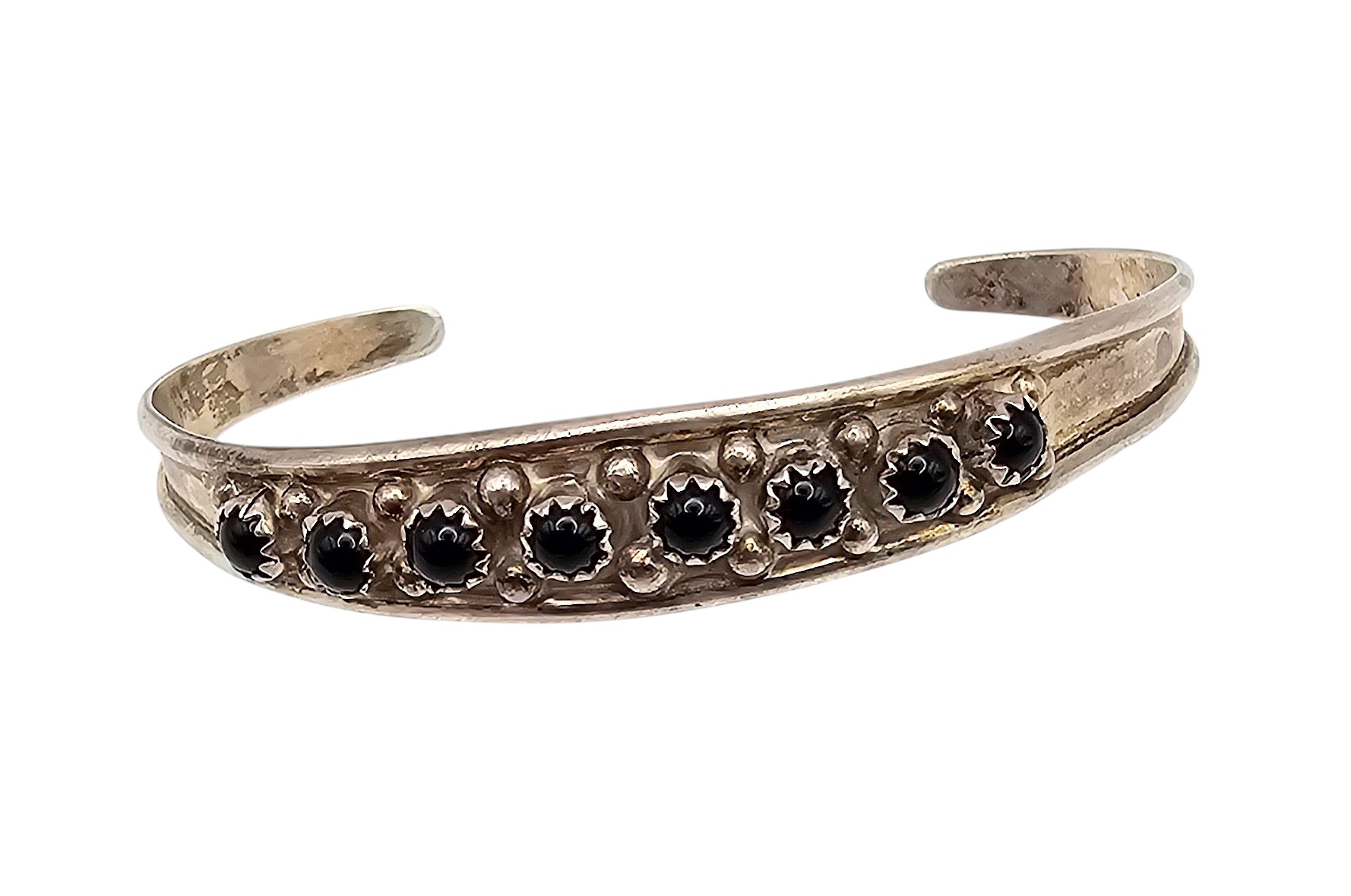 Signed Onyx Sterling Silver Snake Eye Cuff Bracelet 8.5 G