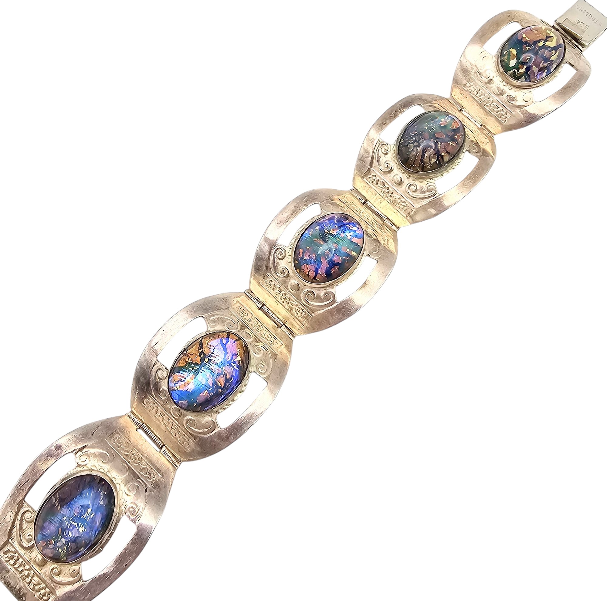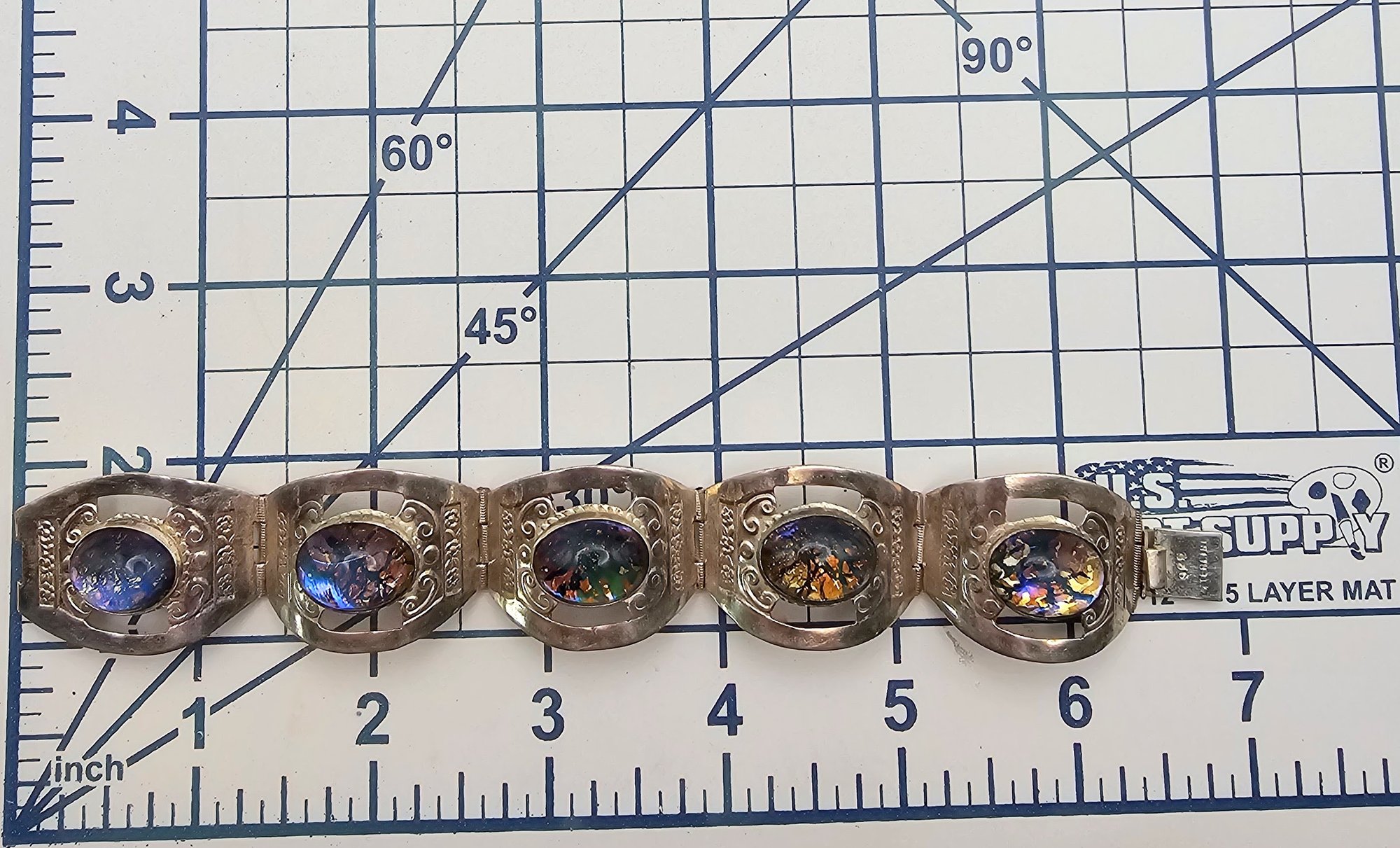 Mexico Alpaca Silver Synthetic Opal Panel Bracelet 38 G