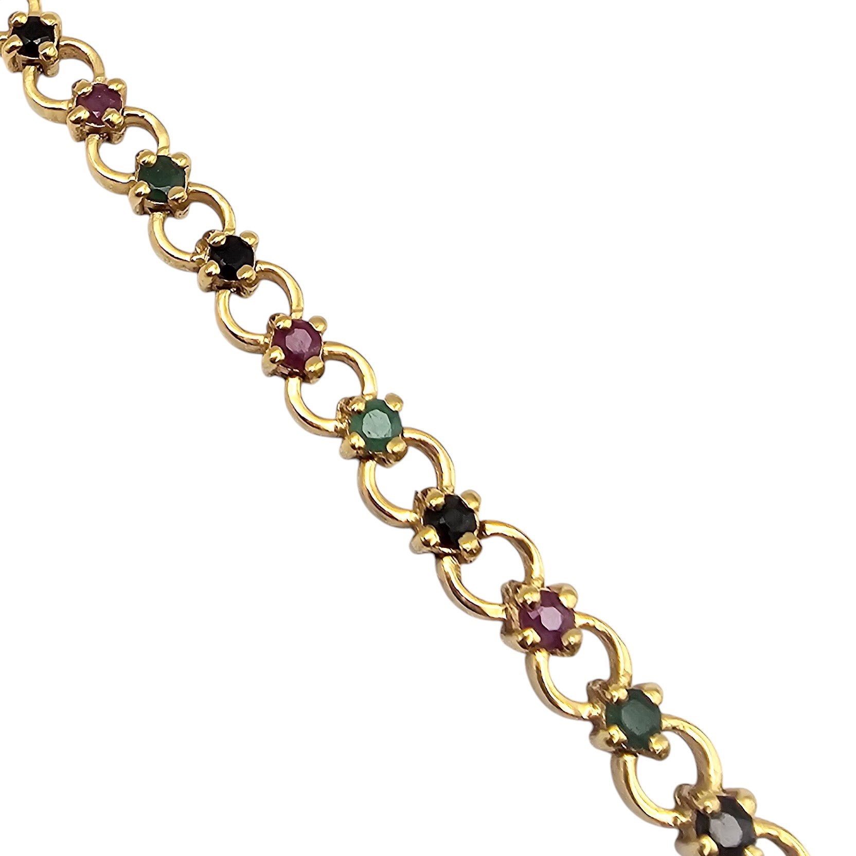 IBB Multi Gemstone Gold Over Sterling Silver Tennis Bracelet 13.7 G