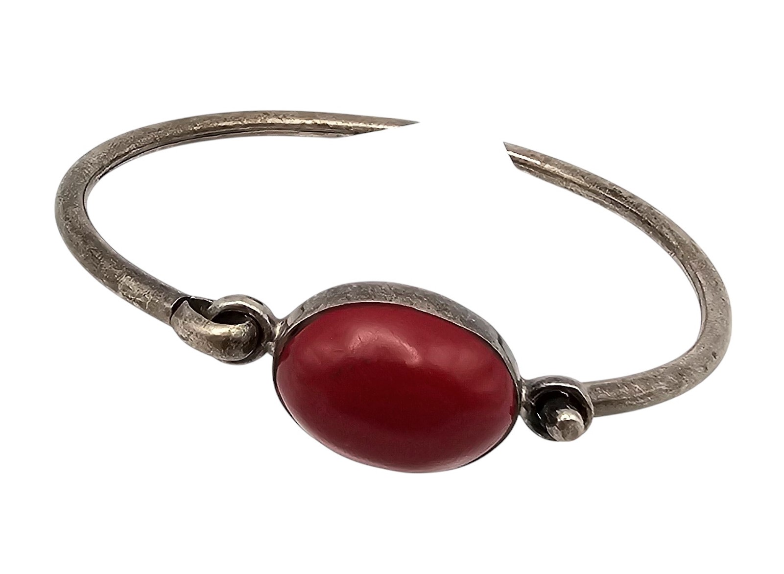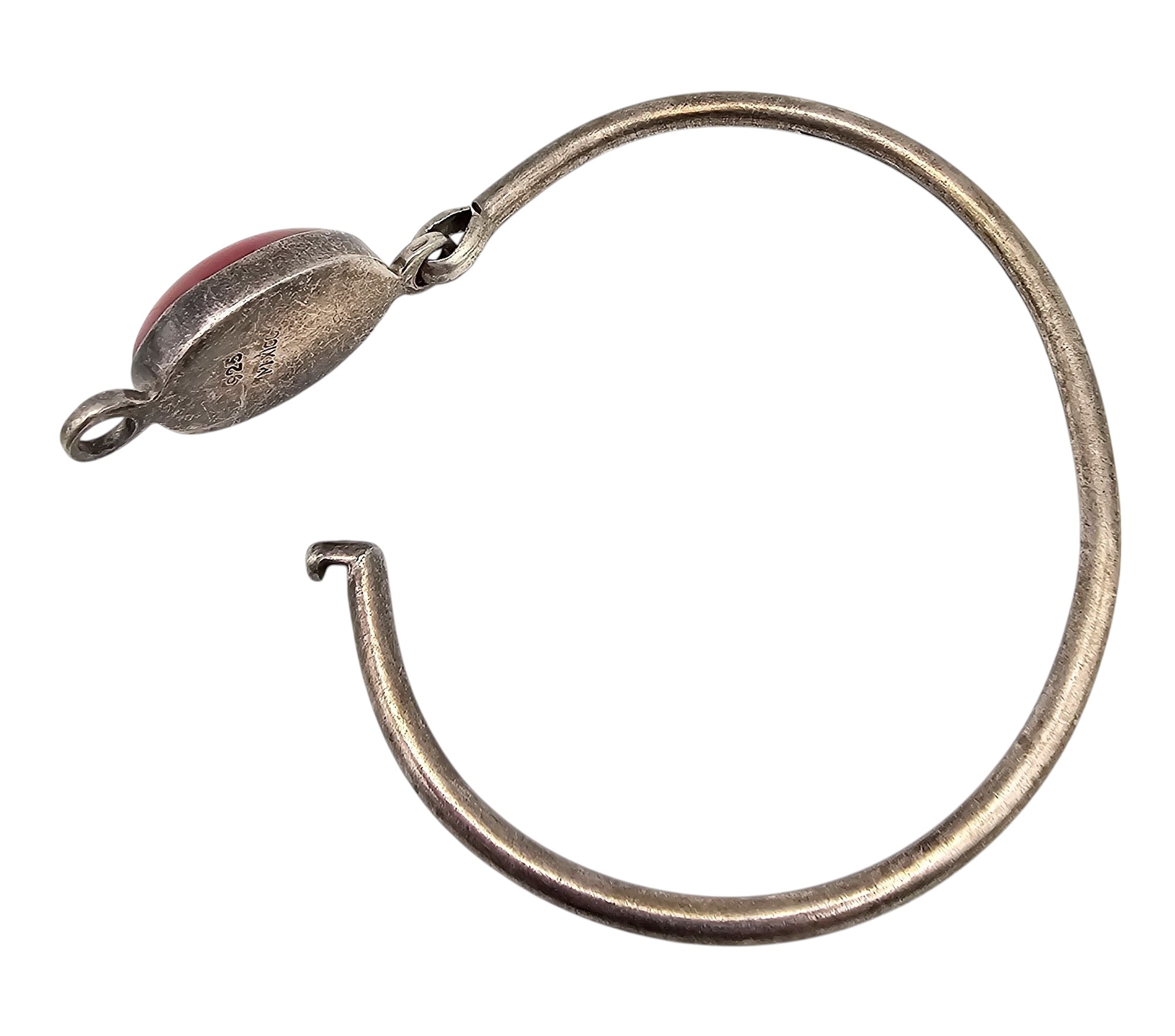 Mexico Jasper Sterling Silver Eye Hook Bangle Bracelet 17.8 G
