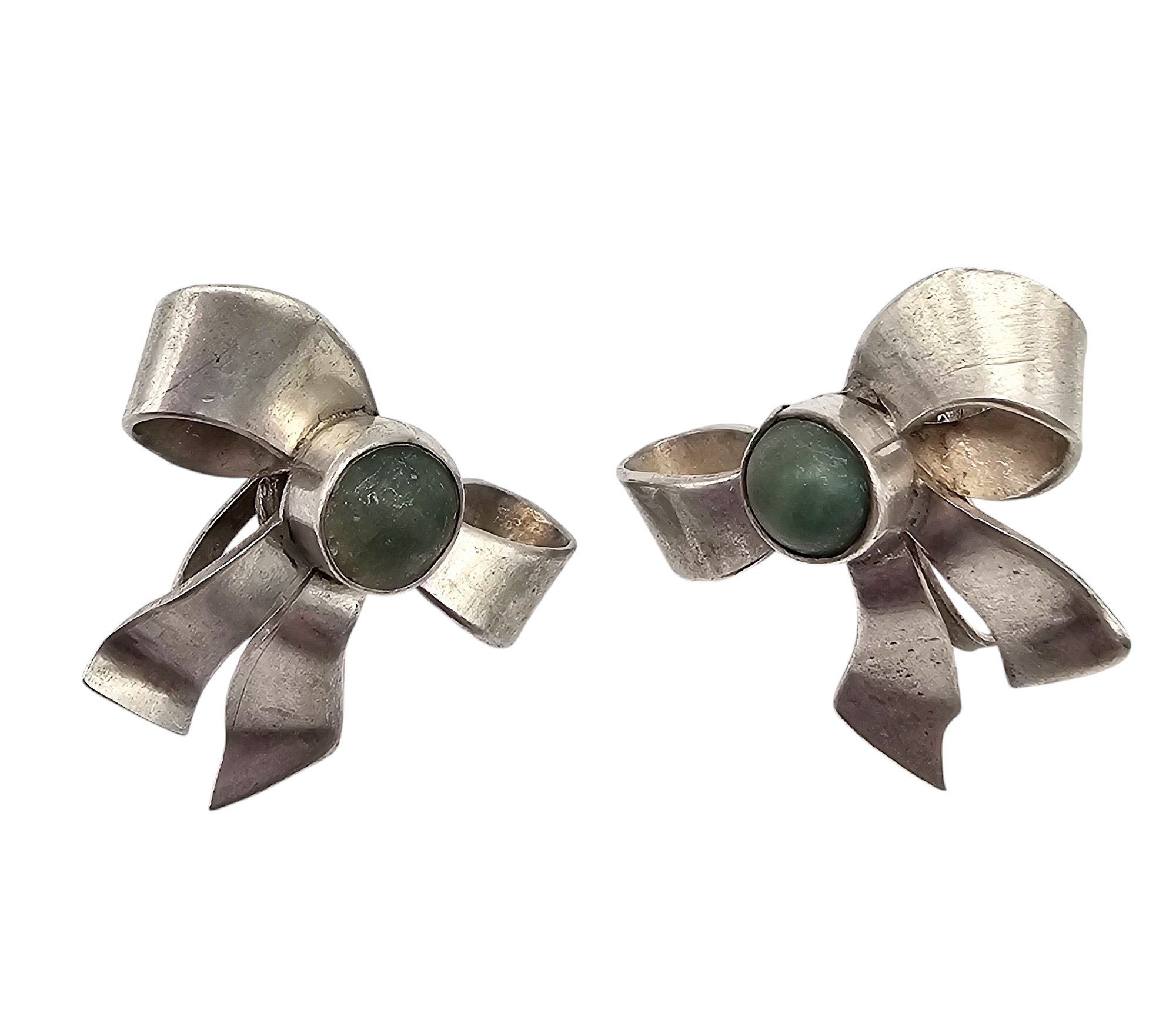 Mexico Turquoise Sterling Silver Bow Earrings 10 G