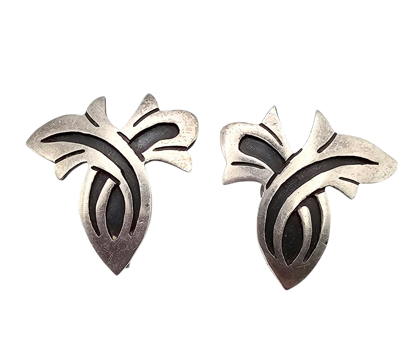 Mexico ACH Taxco Sterling Silver Leaf Earrings 7.3 G