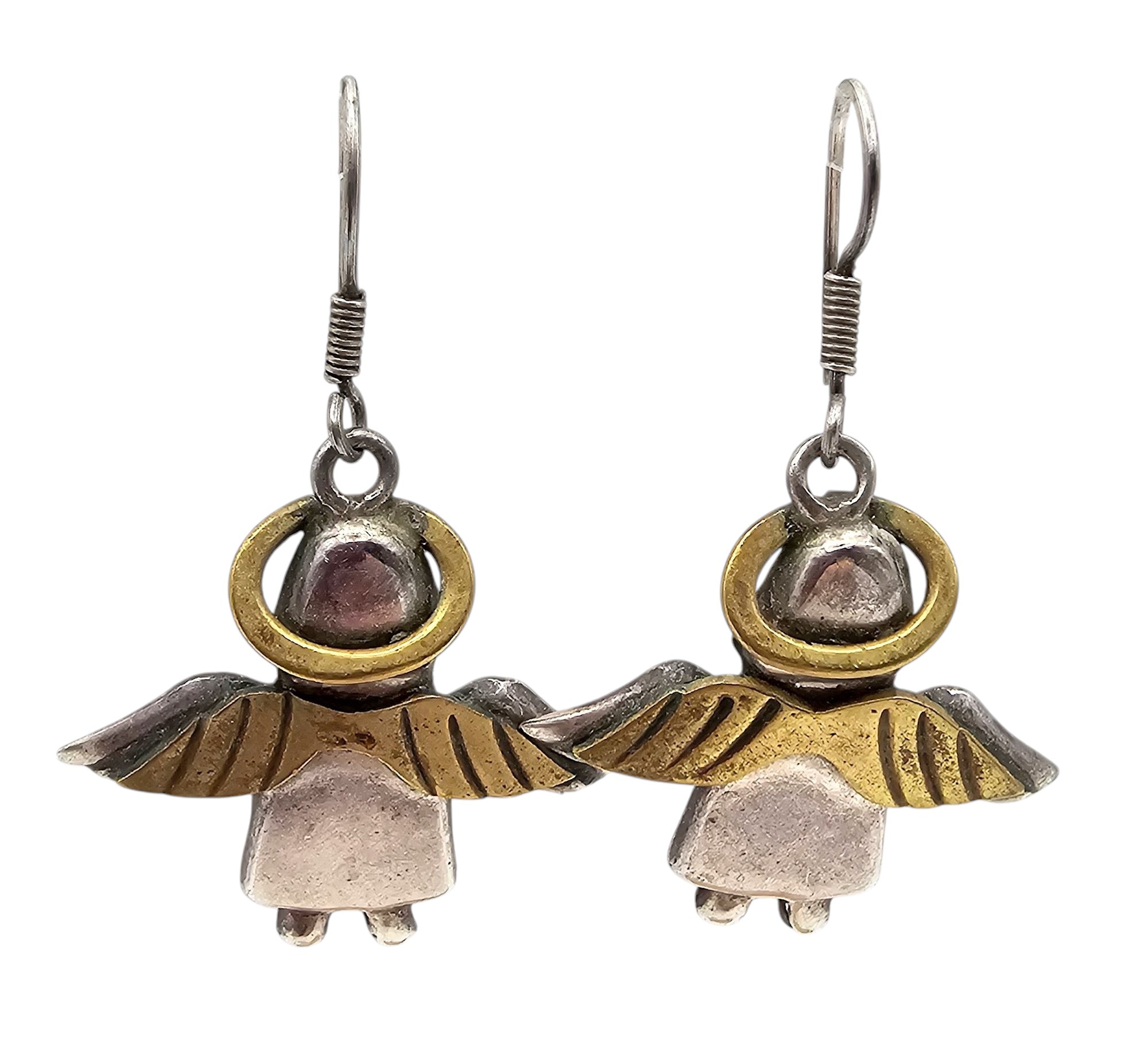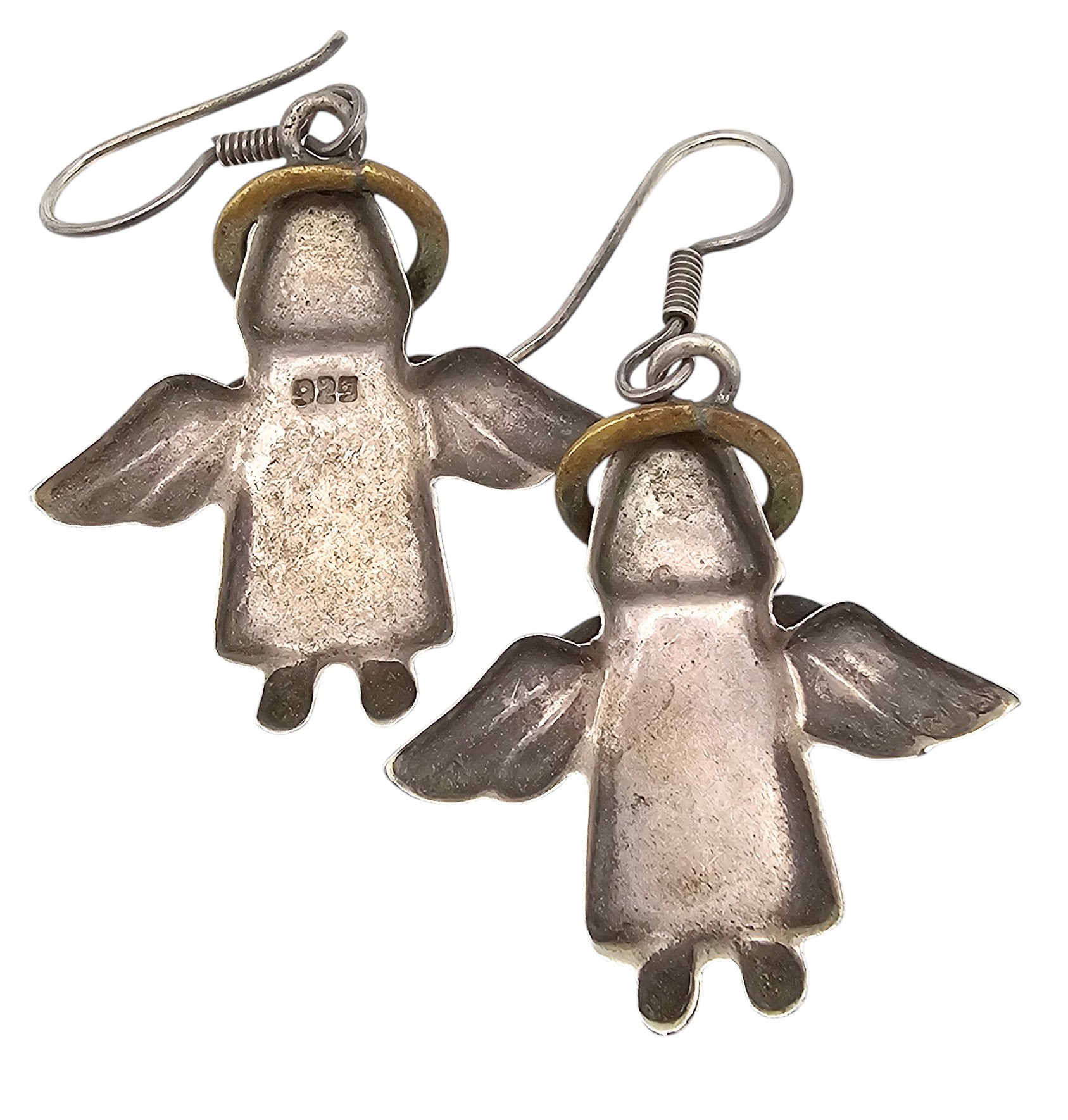 Sterling Silver Two-Tone Angel Drop Dangle Earrings 8.7 G