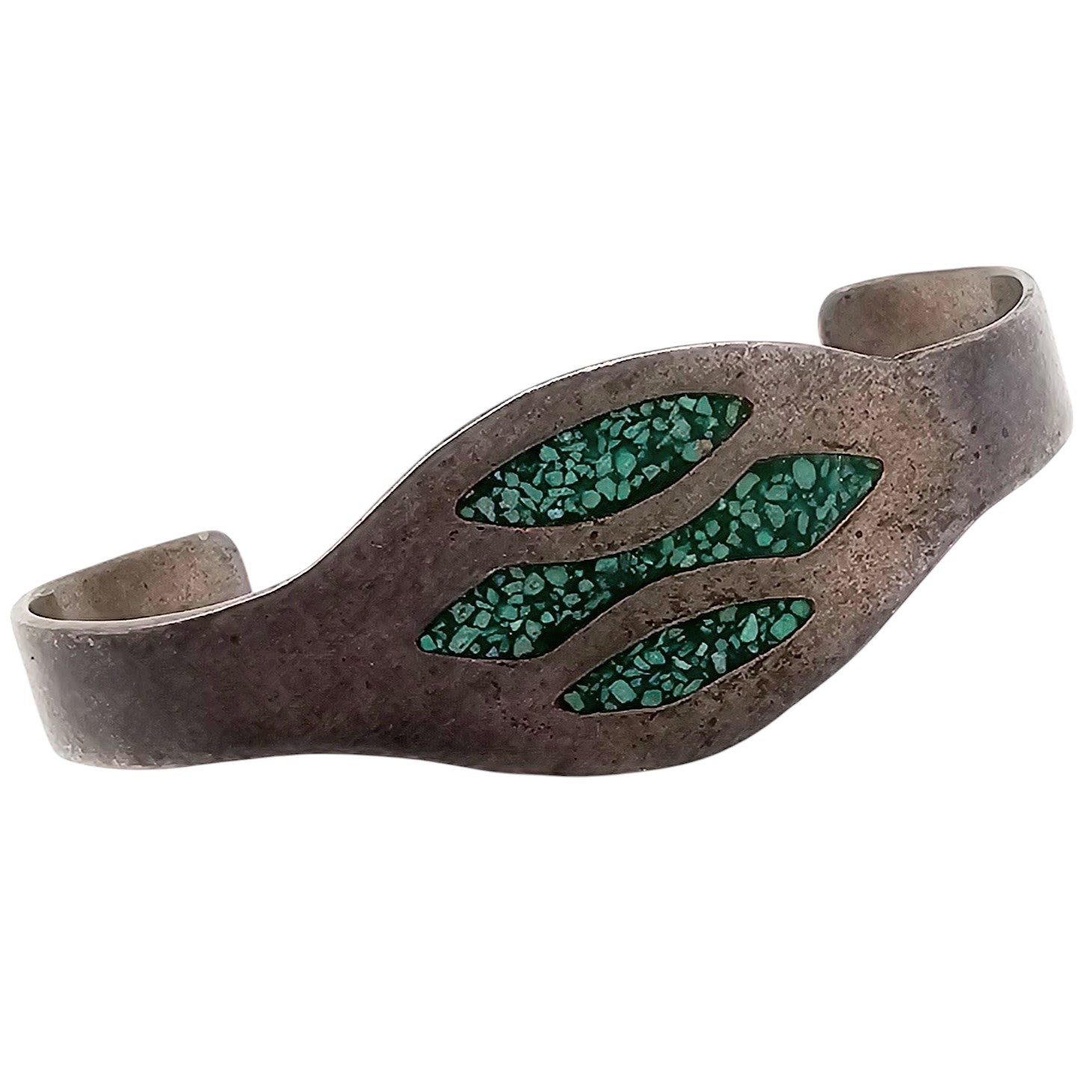 ROM Mexico Crushed Turquoise Sterling Silver Cuff Bracelet 20 G