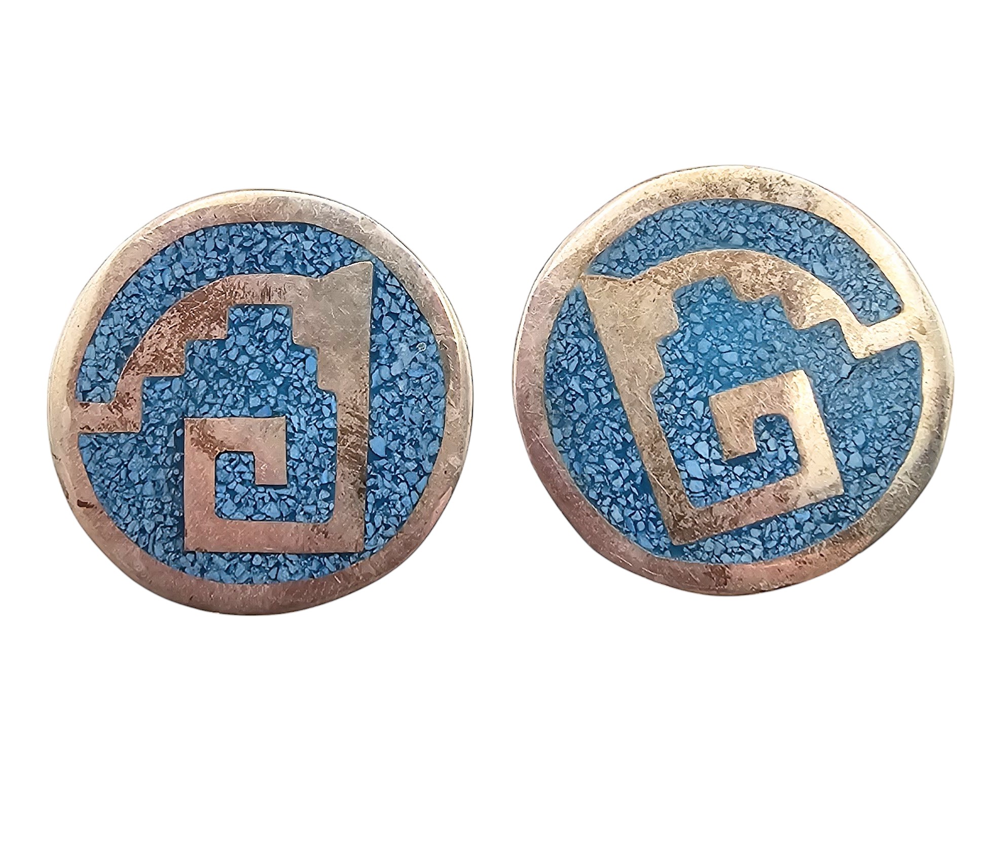 Mexico Crushed Turquoise Sterling Silver Earrings 5.4 G