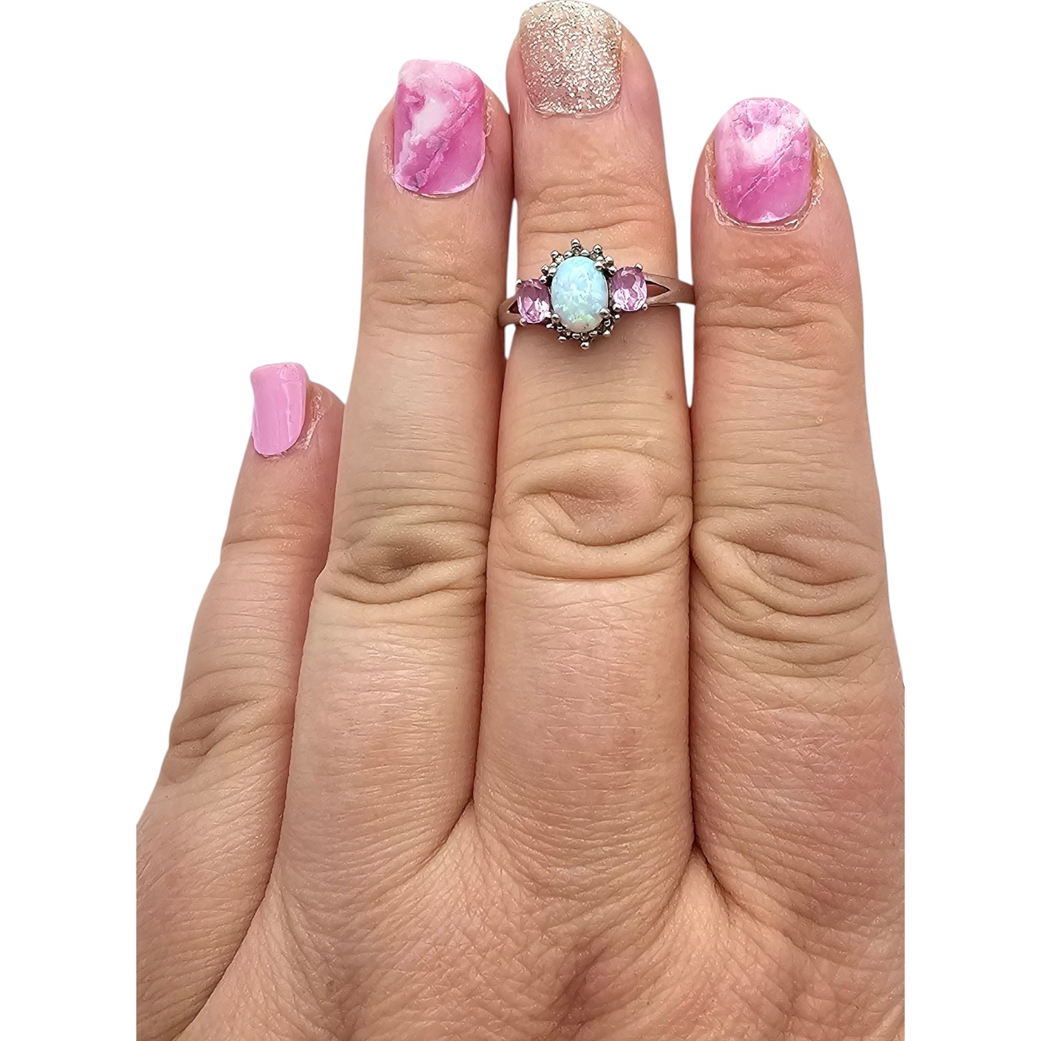 EC Pink Topaz Opal Sterling Silver Cocktail Ring Size 6.5 2.9 G