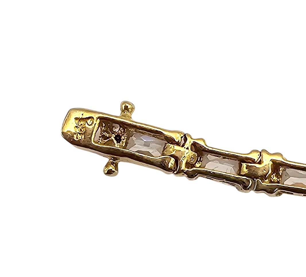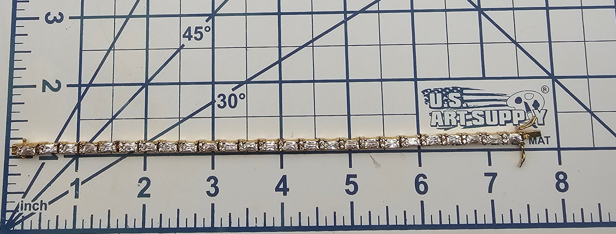Rhinestone Gold Over Sterling Silver Tennis Bracelet 13.6 G