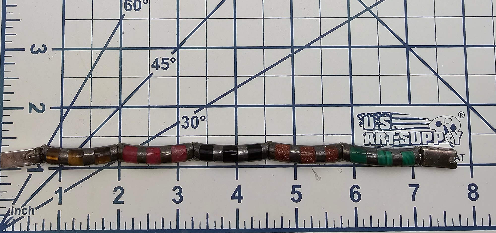 Mexico Taxco TL-177 Malachite Onyx Quartz Tigers Eye Goldstone Sterling Silver Bracelet 38 G