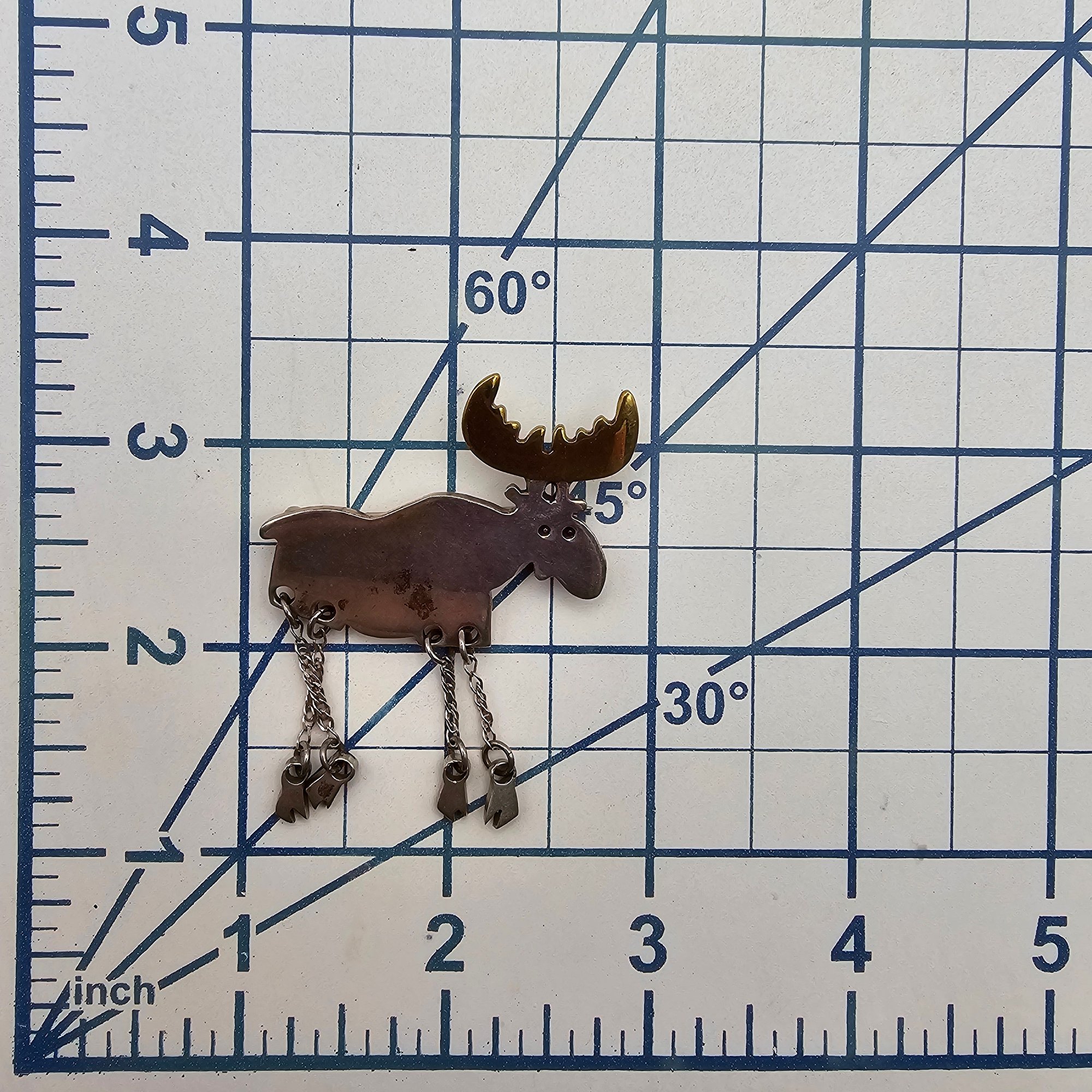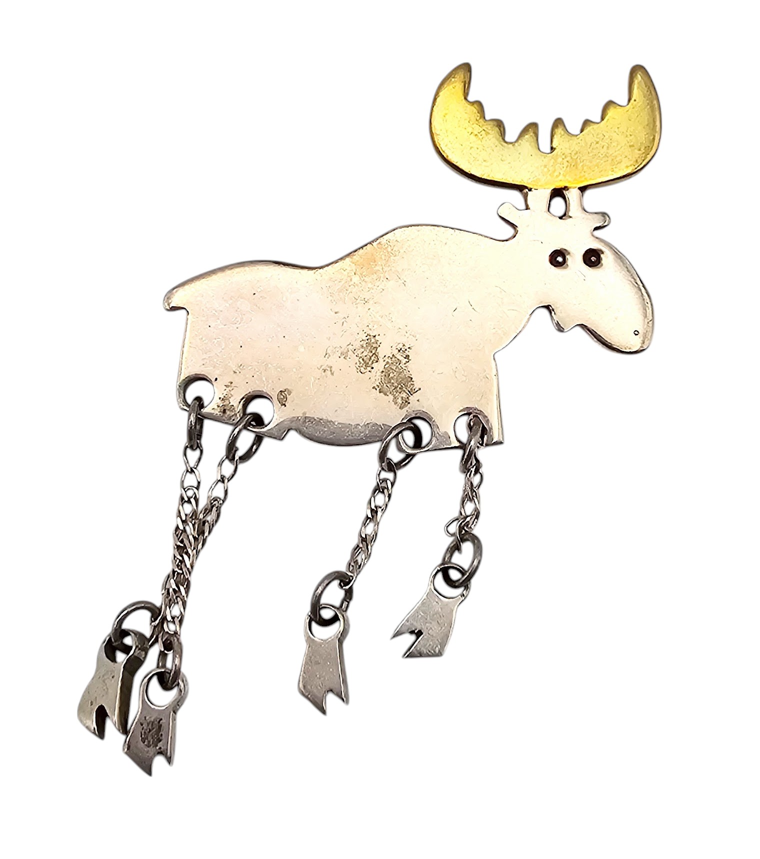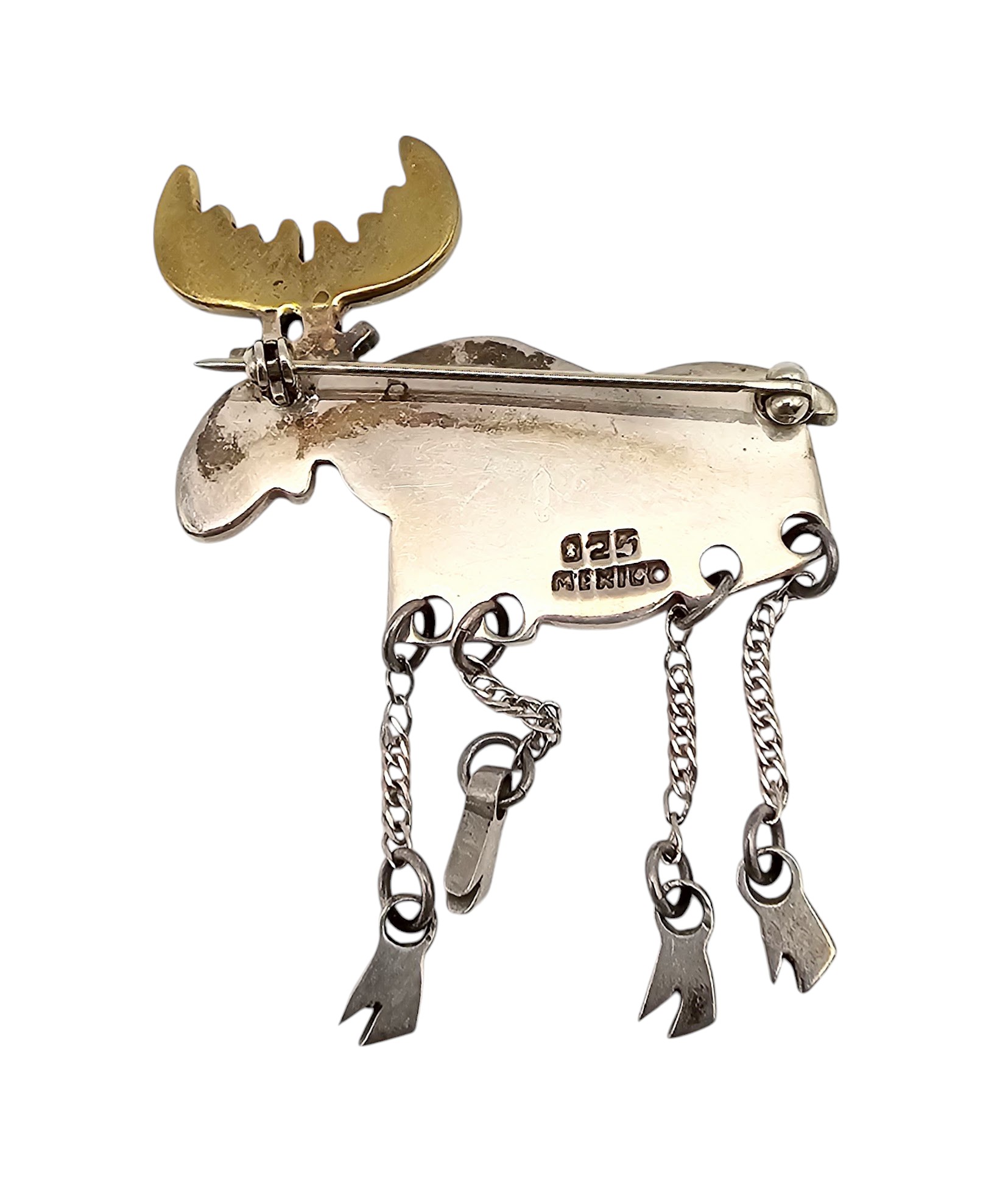 Mexico Sterling Silver Moose Dangle Legs Brooch 15 G
