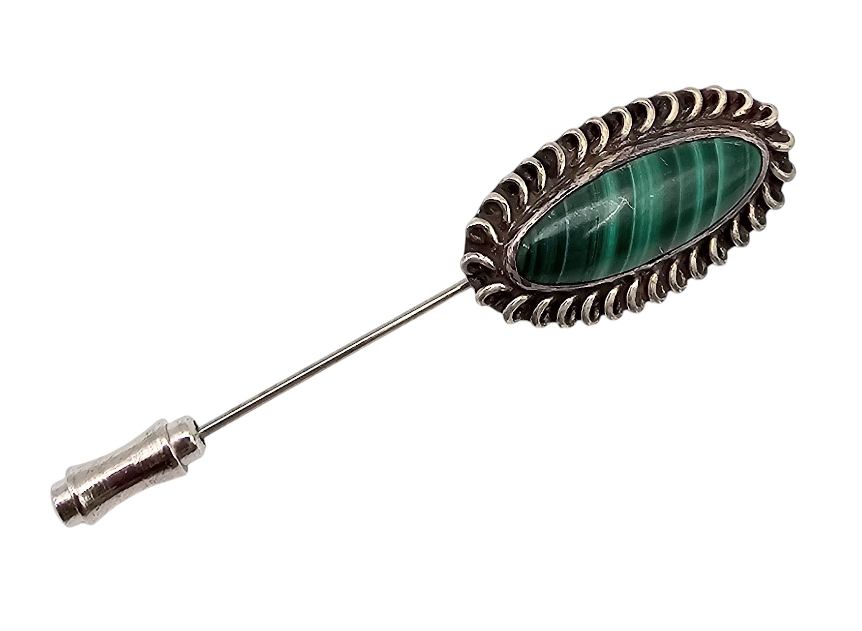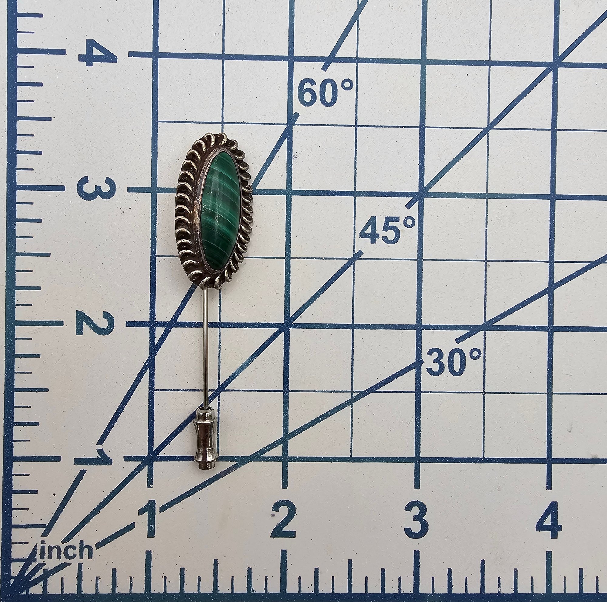 Mexico Malachite Sterling Silver Lapel Pin 5.6 G