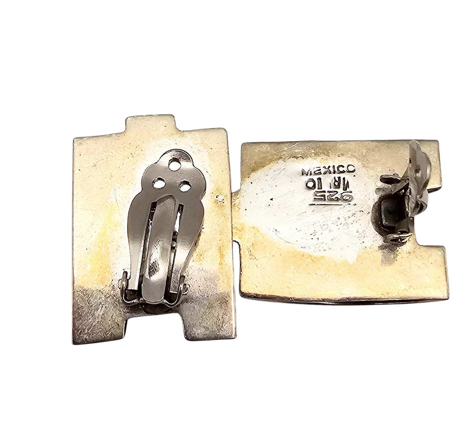 Mexico Sterling Silver Two-Tone Earrings 20.8 G