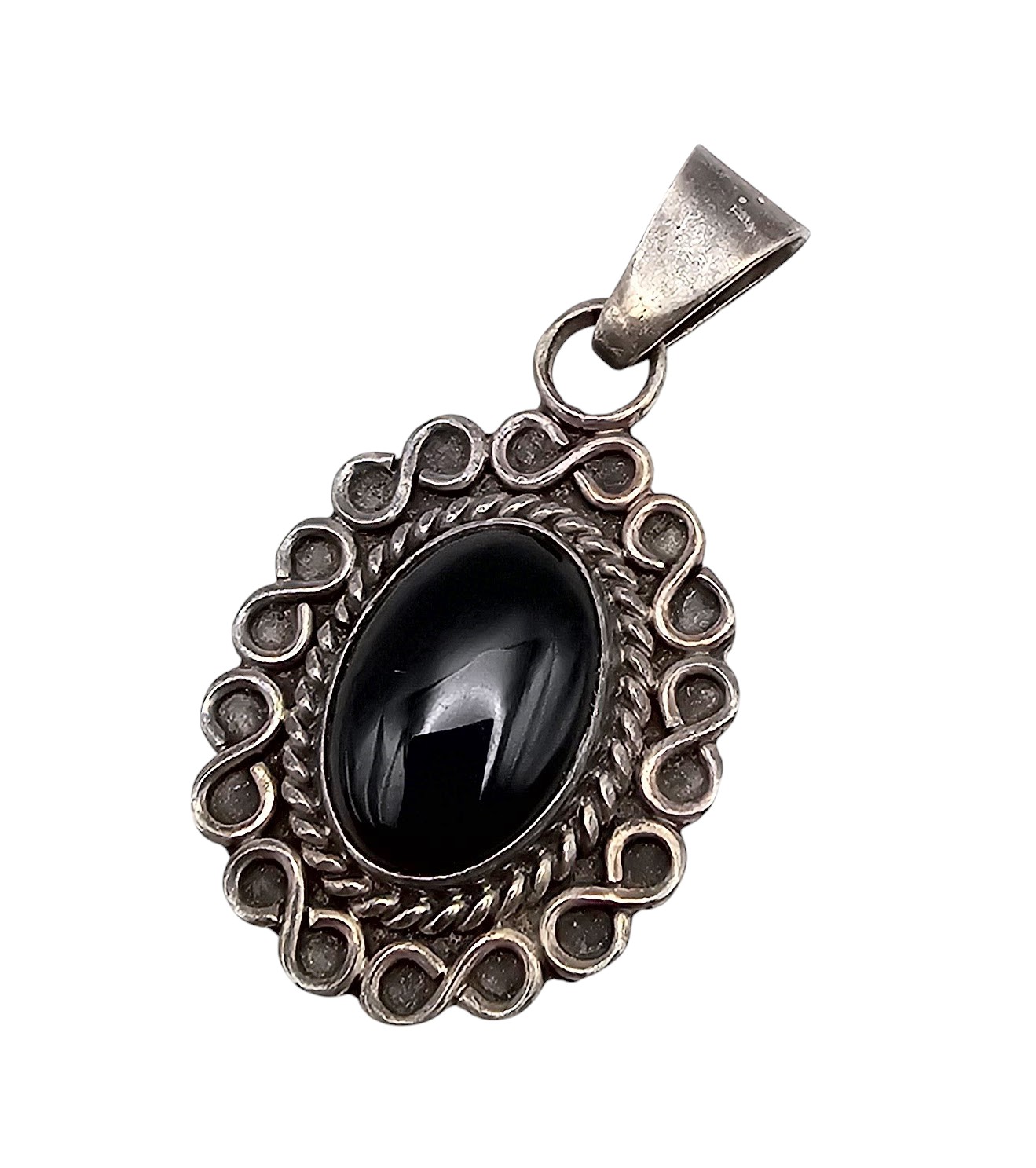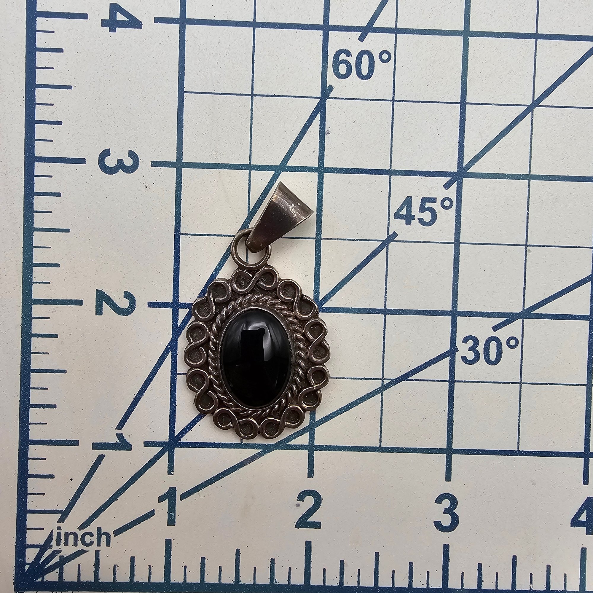 Mexico Taxco TA-122 Onyx Sterling Silver Pendant 12.2 G