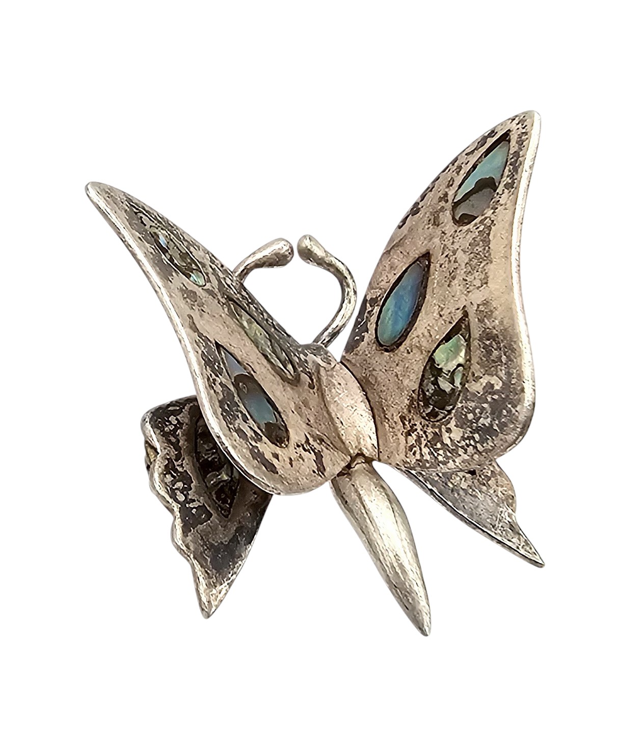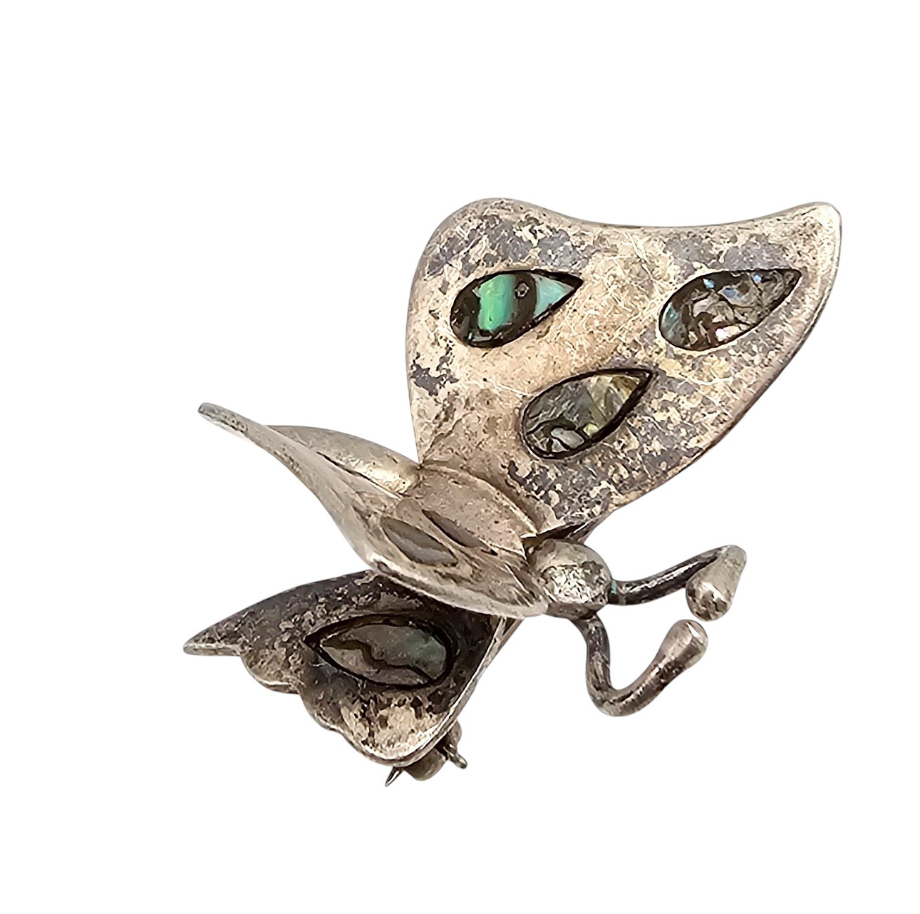 Mexico Abalone Sterling Silver 3D Butterfly Brooch 6.2 G