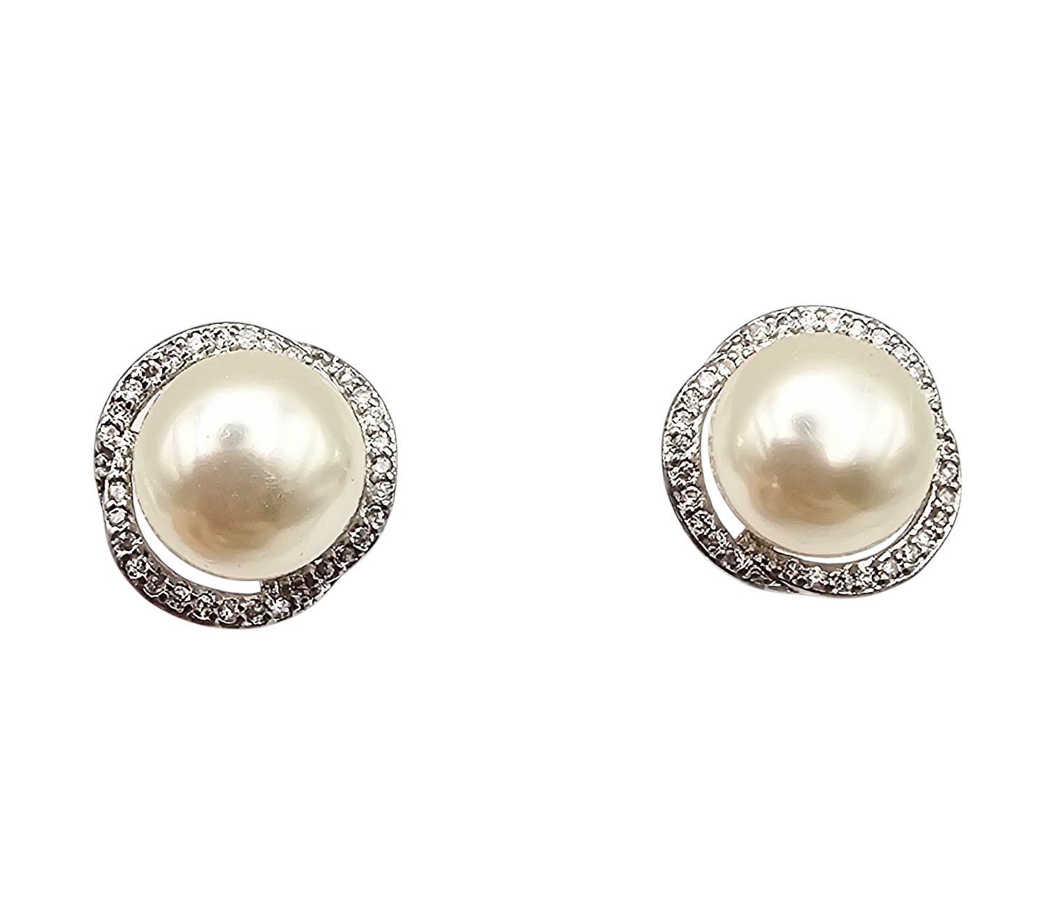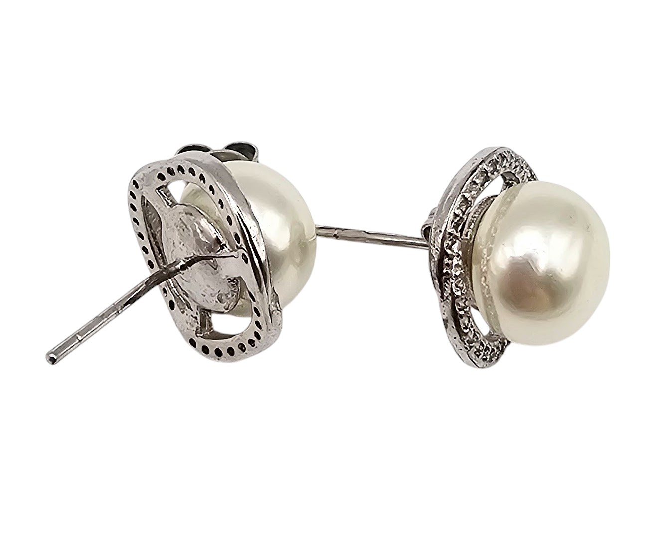 Pearl Diamond Sterling Silver Earrings 3.1 G