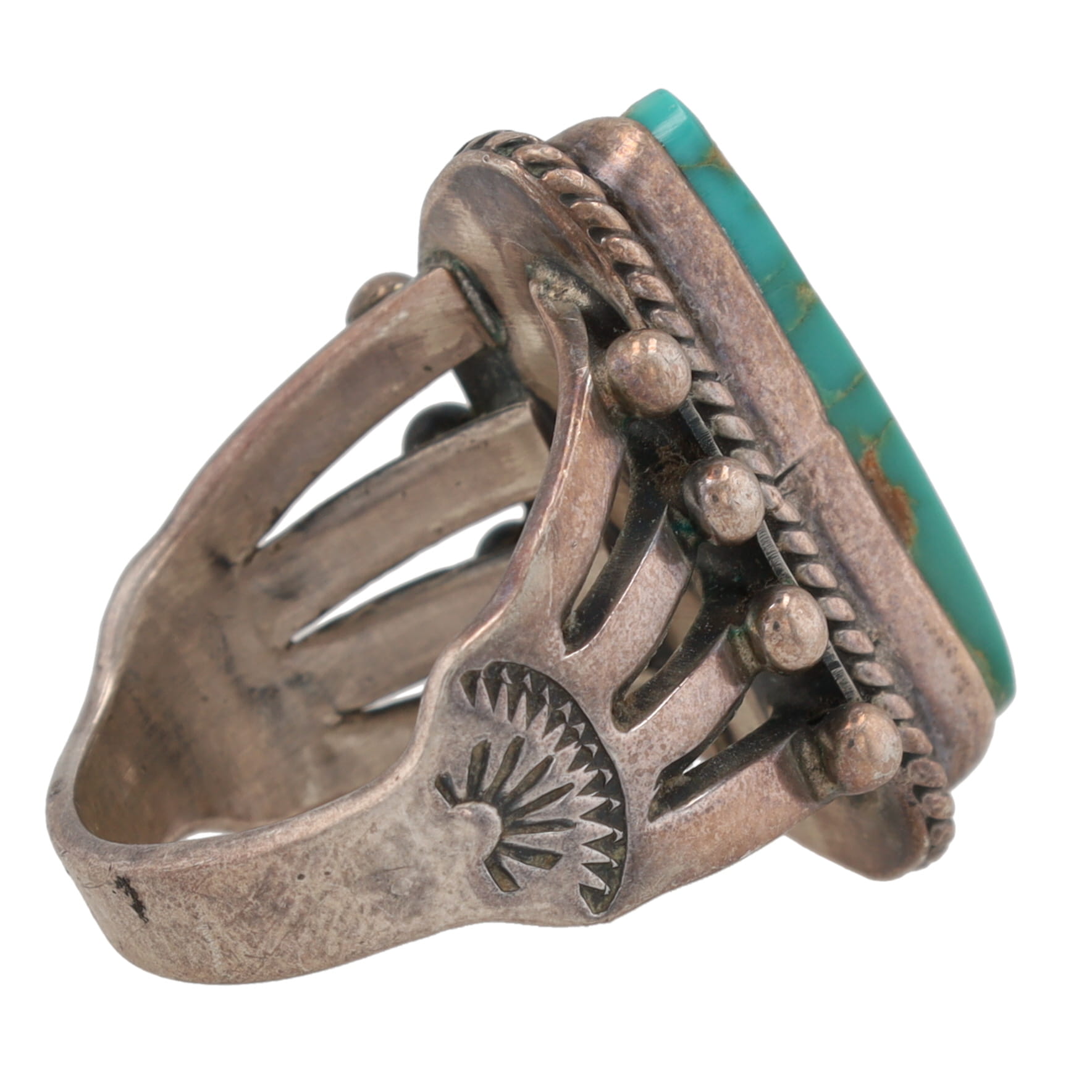 Vintage Navajo Turquoise Sterling Ring Sz 8.5, 12g