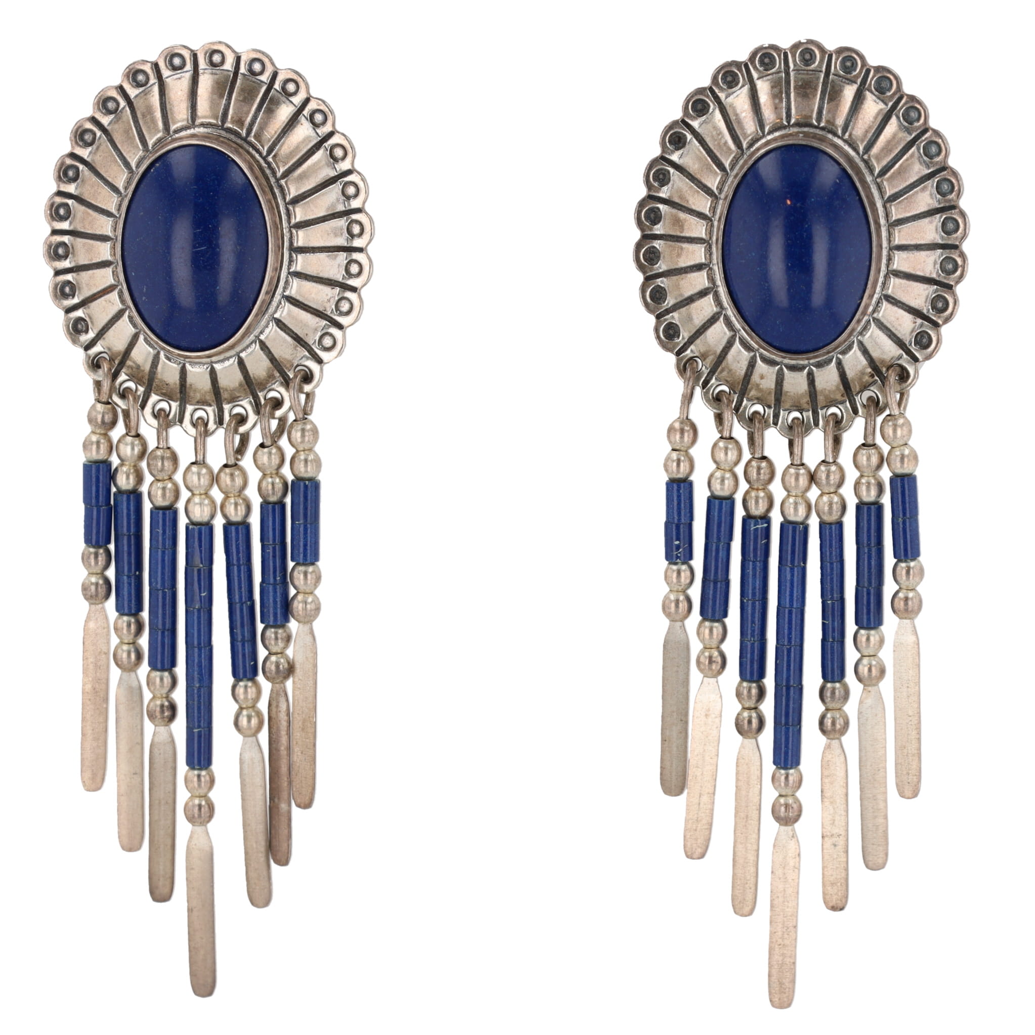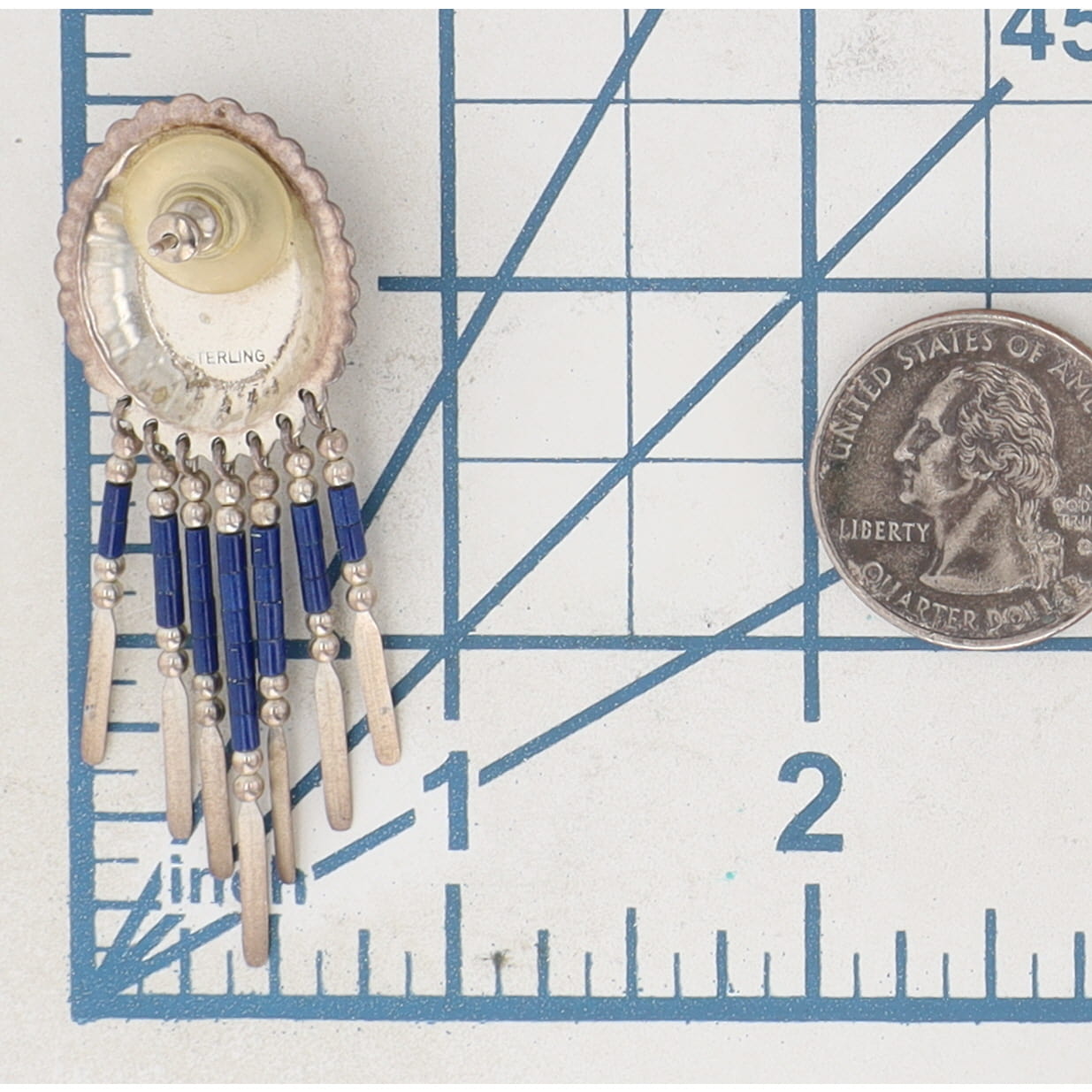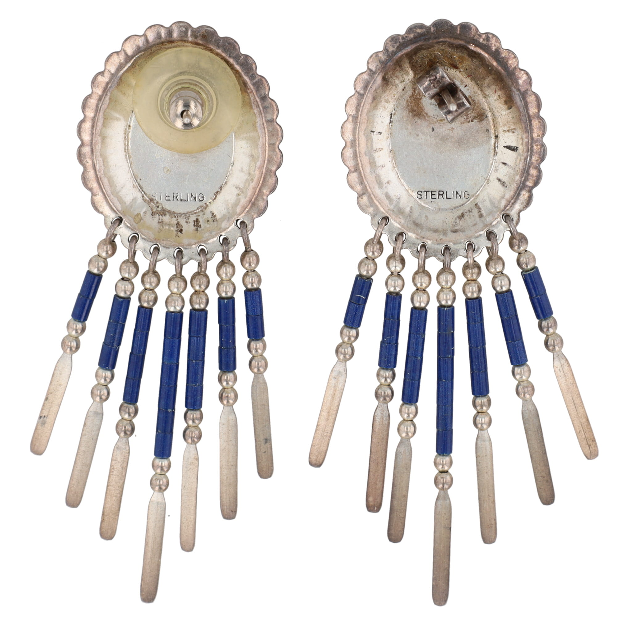 Vintage Navajo Lapis Sterling Concho Dangle Earrings 11g