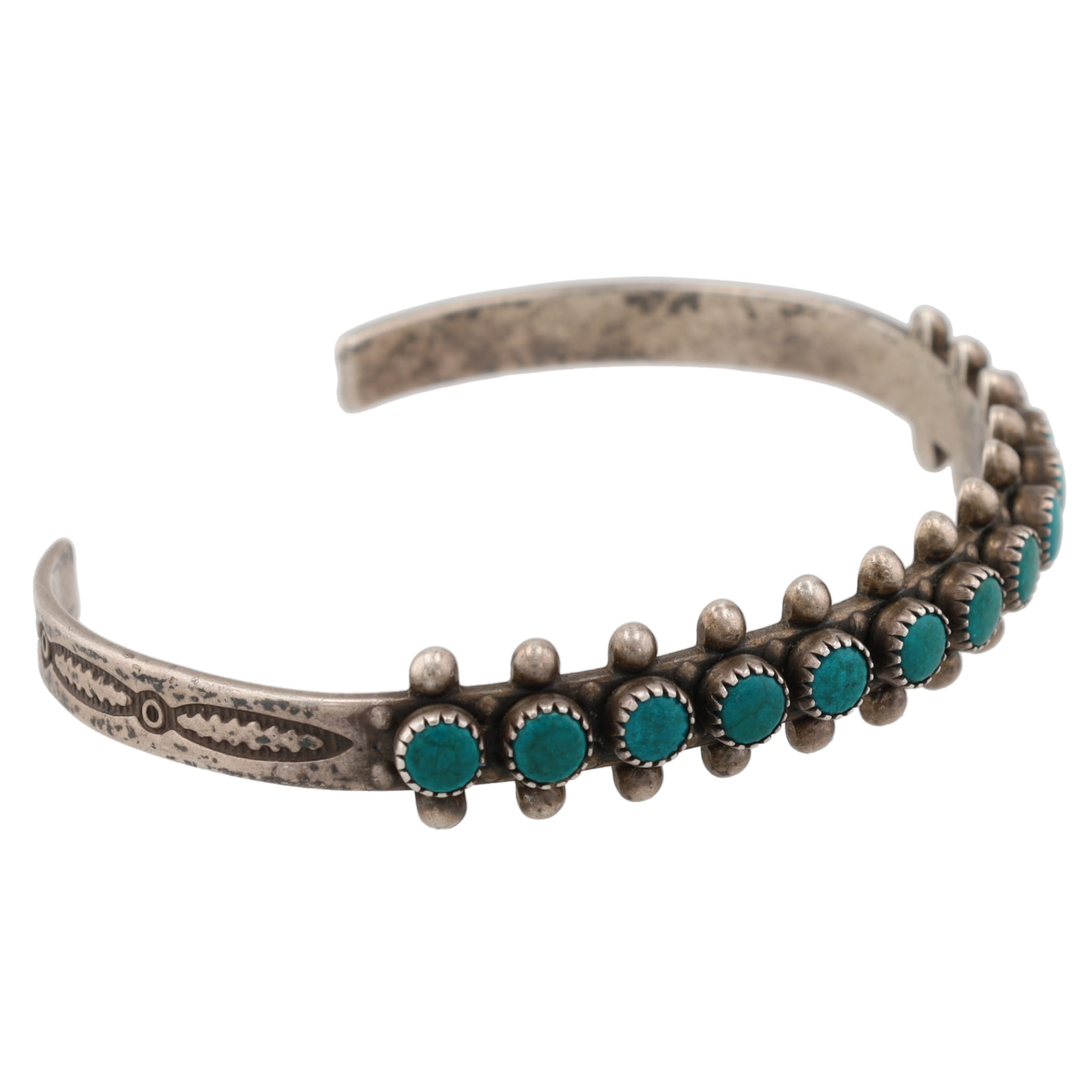 Vintage Navajo Green Turquoise Sterling Cuff Bracelet 12g