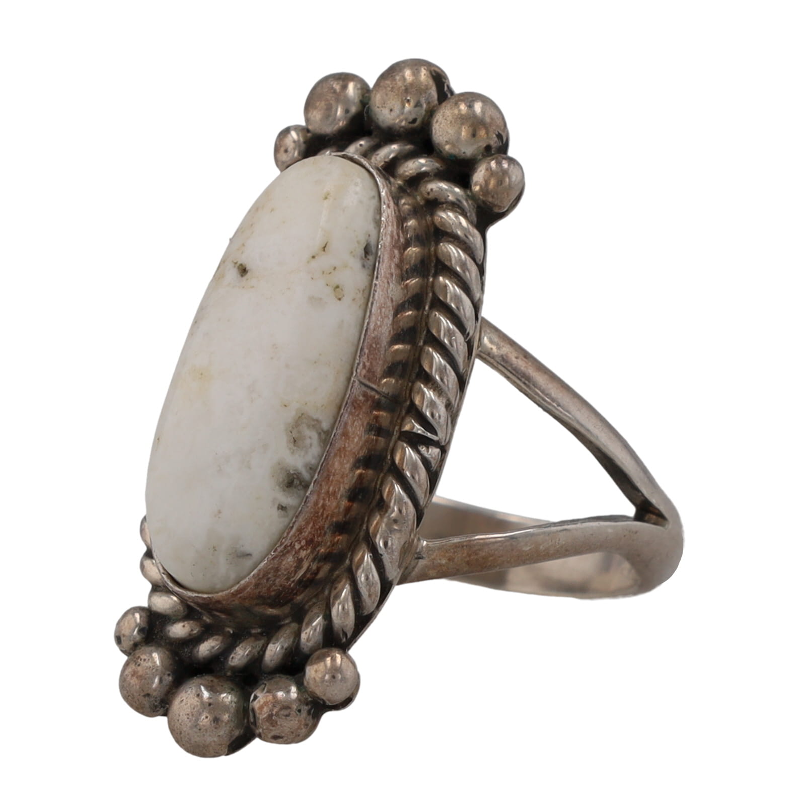 Michael Spencer Navajo White Buffalo Turquoise Sterling Ring Sz 6.5, 8g