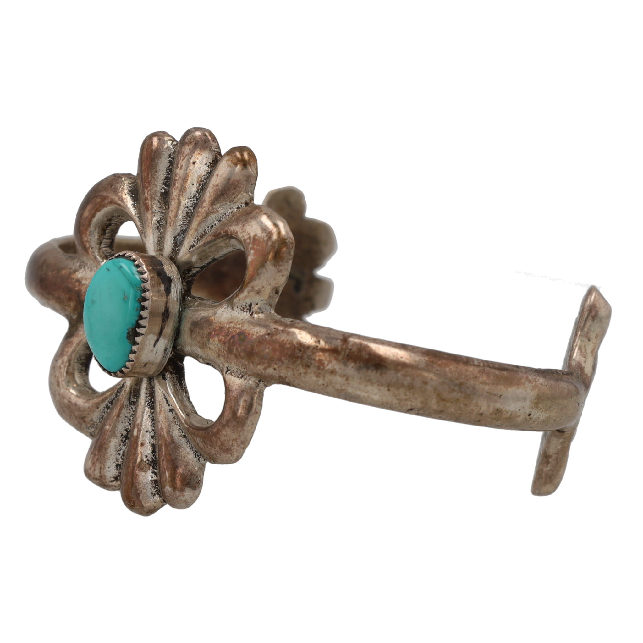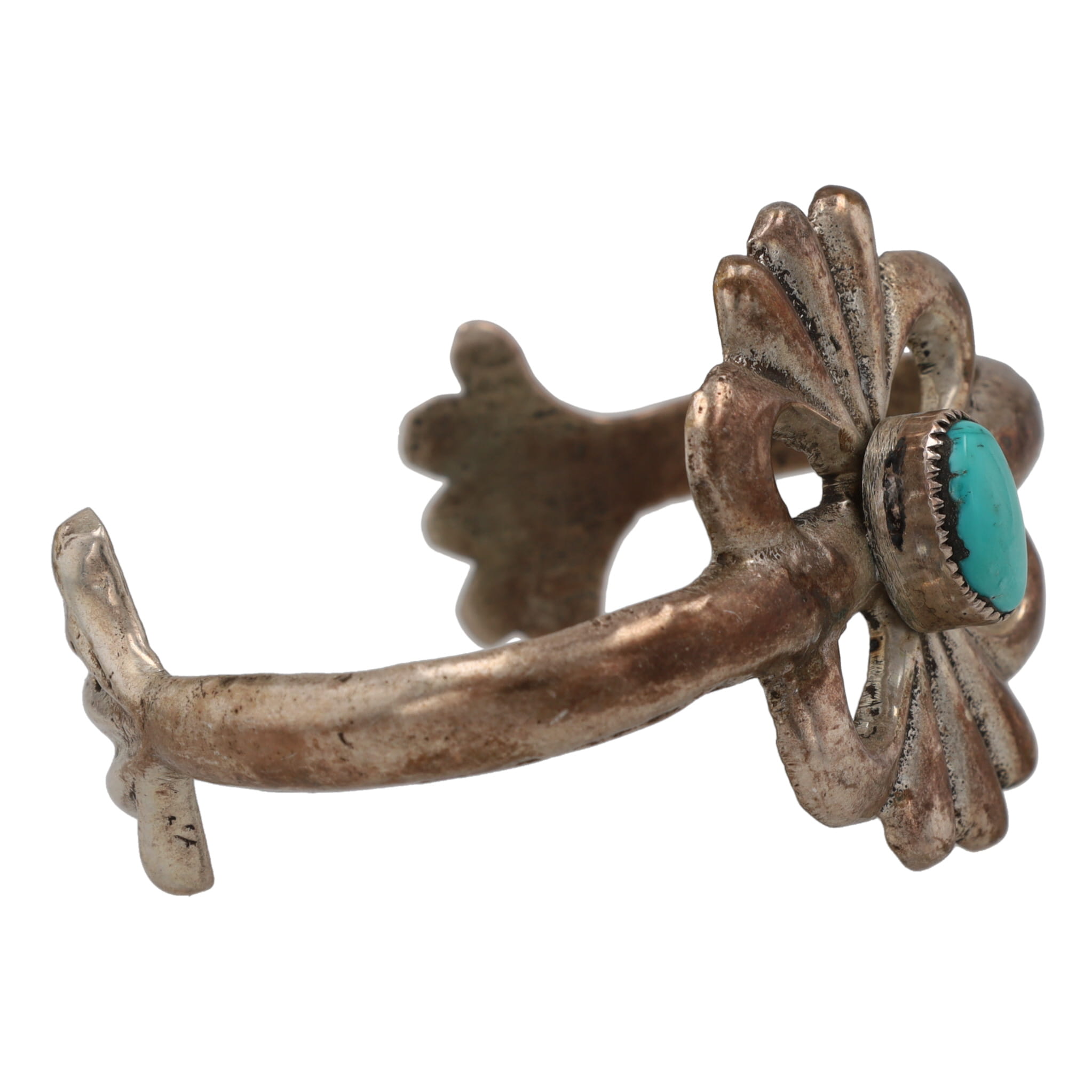 Vintage Navajo Turquoise Sandcast Sterling Cuff Bracelet 34g