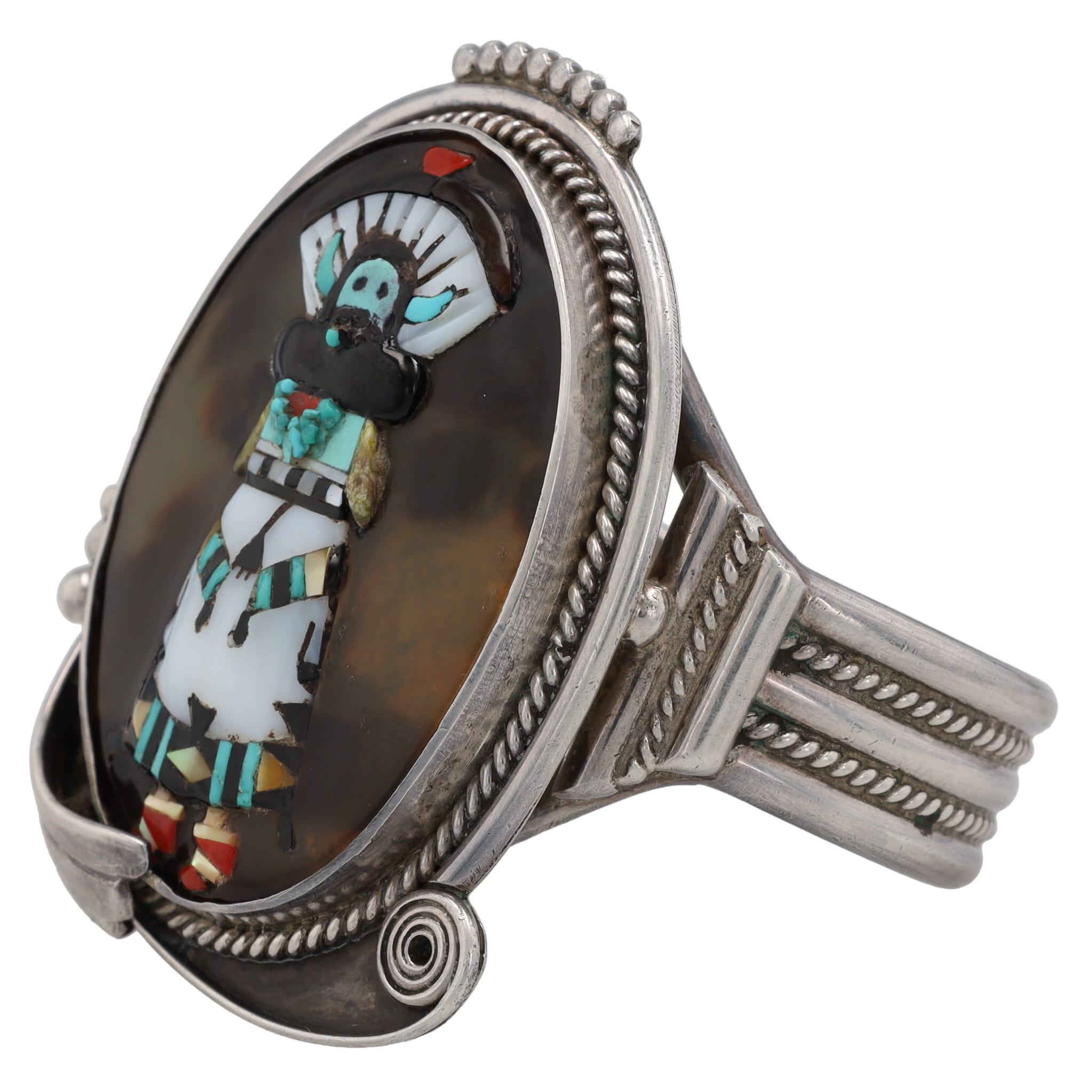 Stunning Augustine & Rosaline Pinto Zuni Raised Kachina Inlay Cuff Bracelet 74.5g