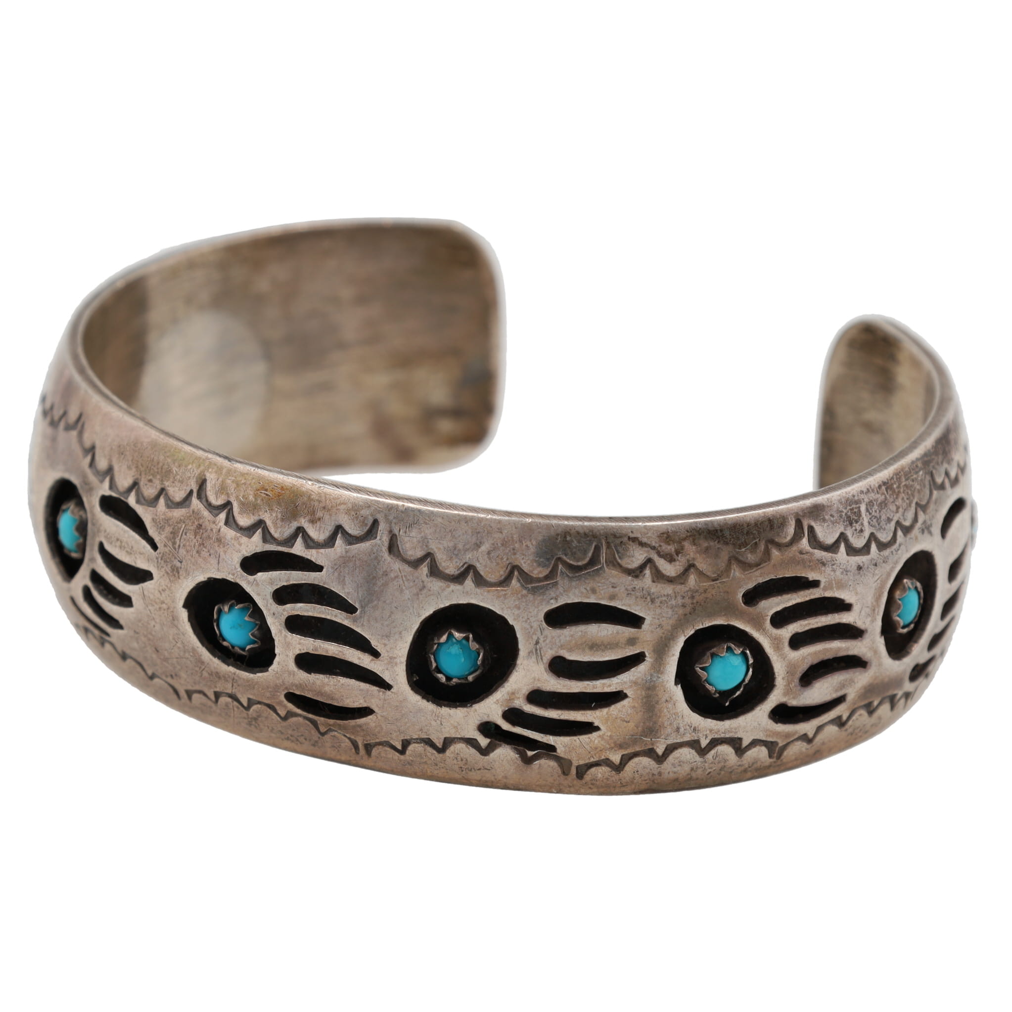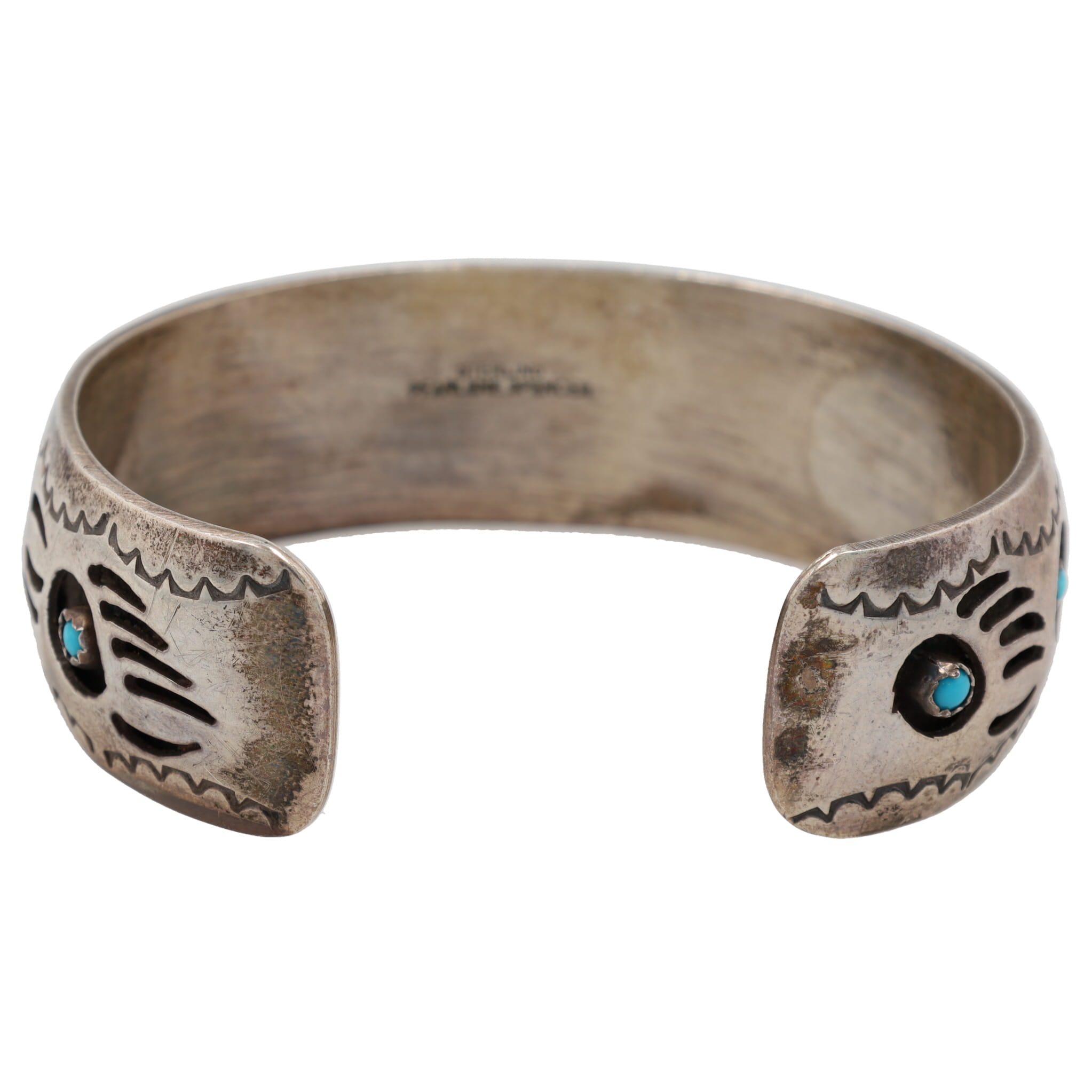 Pearlene Spencer Navajo Turquoise Sterling Bear Paw Cuff Bracelet 28g