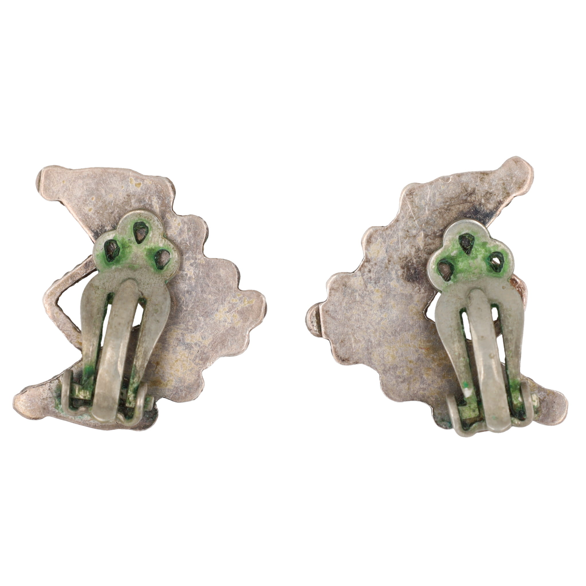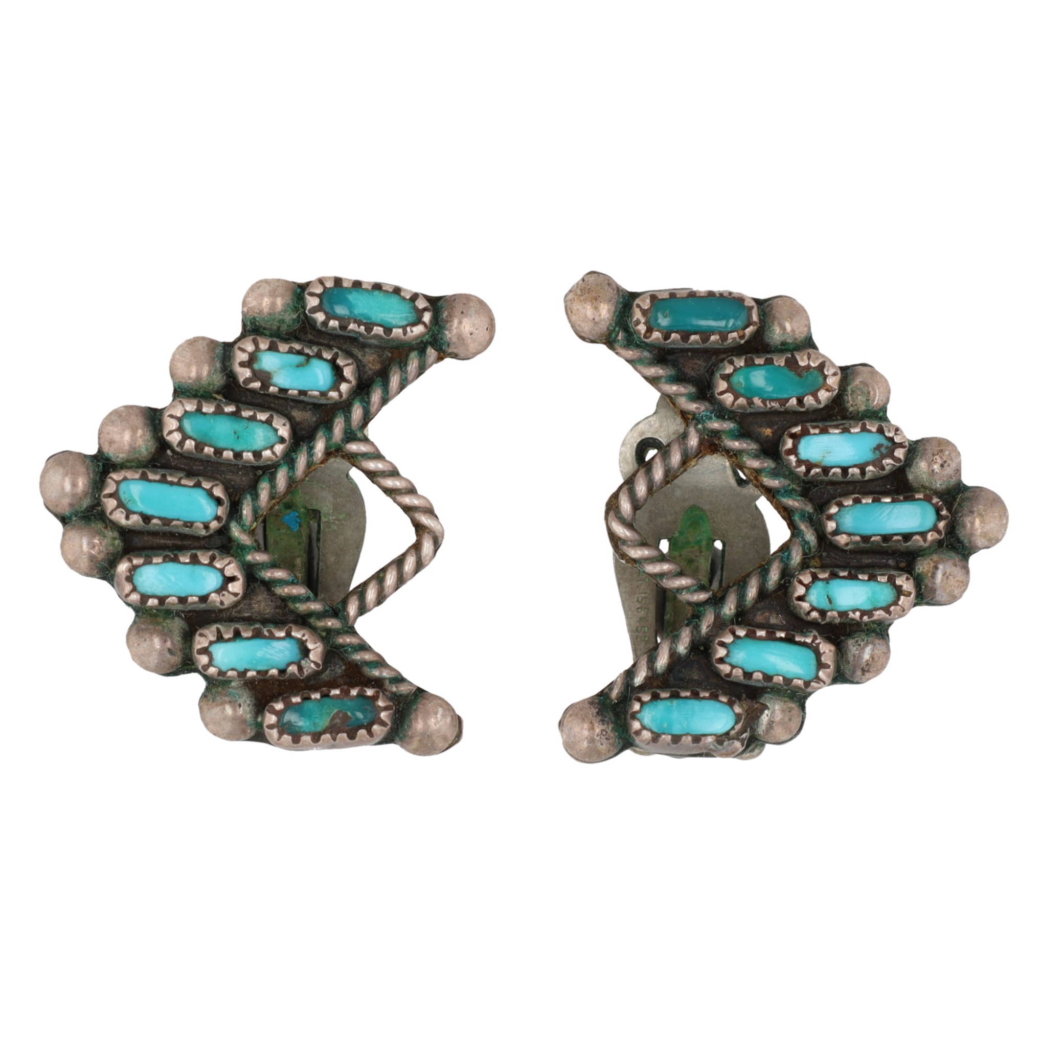Vintage Zuni Turquoise Sterling Clip On Earrings 5g