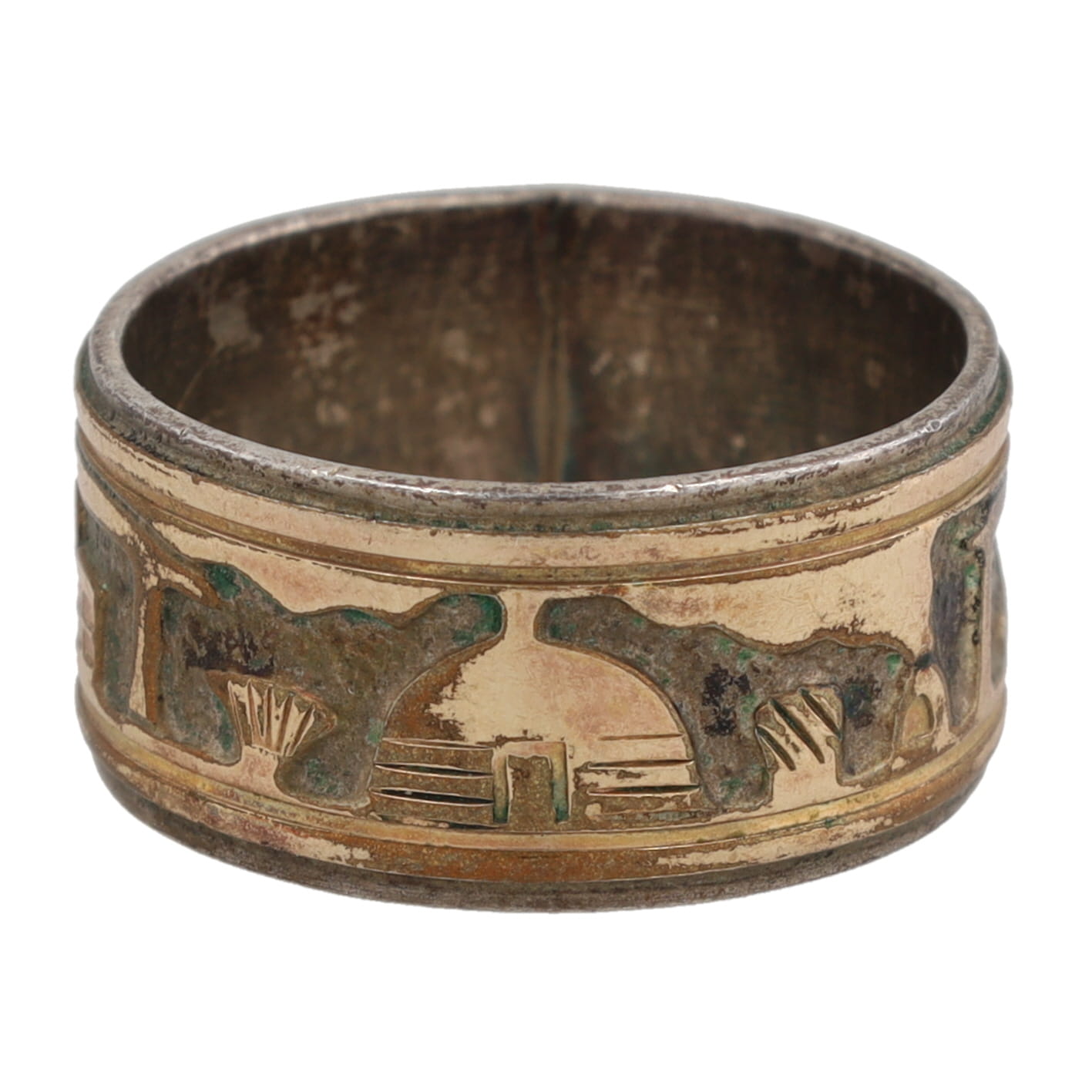 Offina Pino Navajo 12K Gold Fill Sterling Storyteller Ring Sz 9, 6.5g