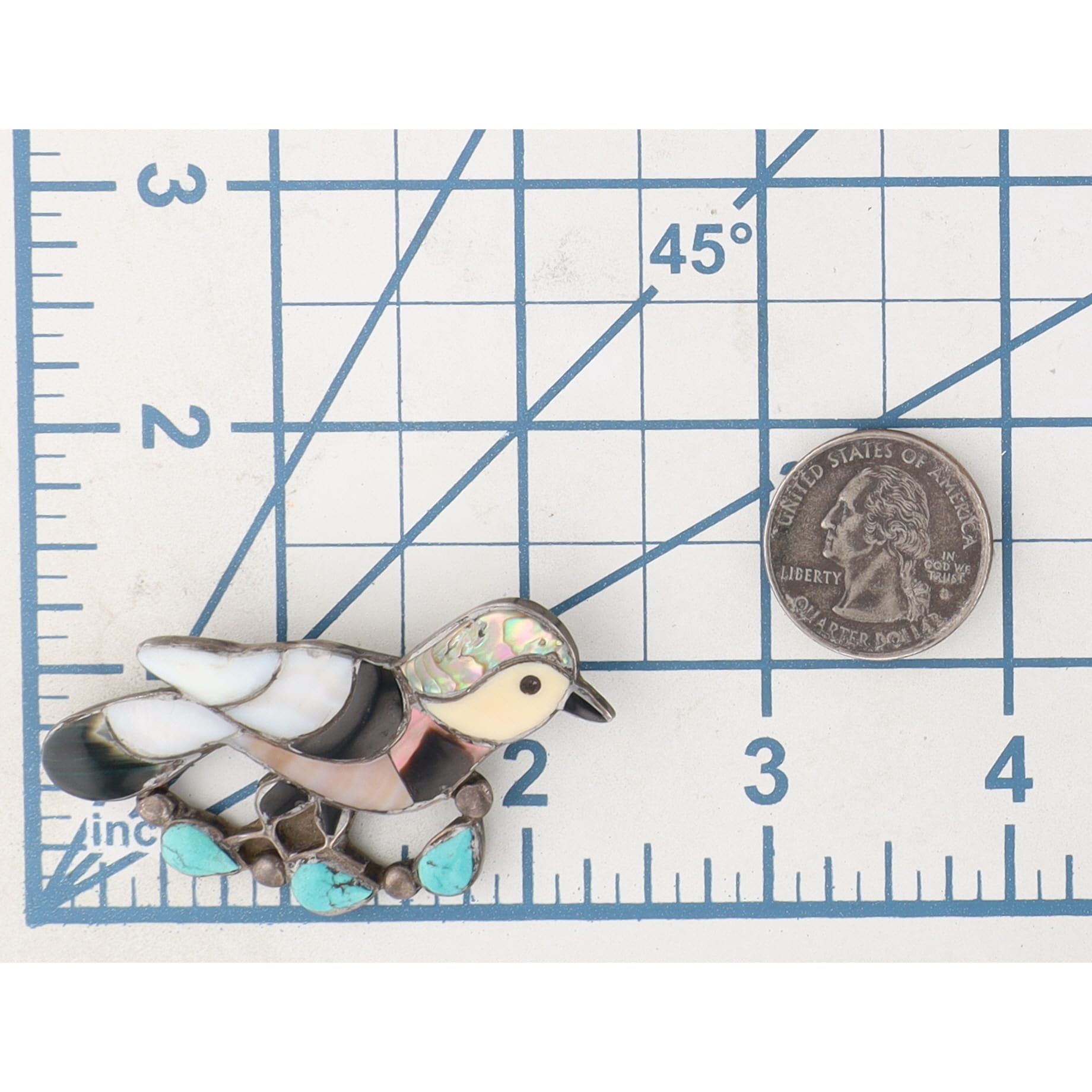 Vintage Zuni Multi Stone Sterling Inlay Bird Brooch 12g