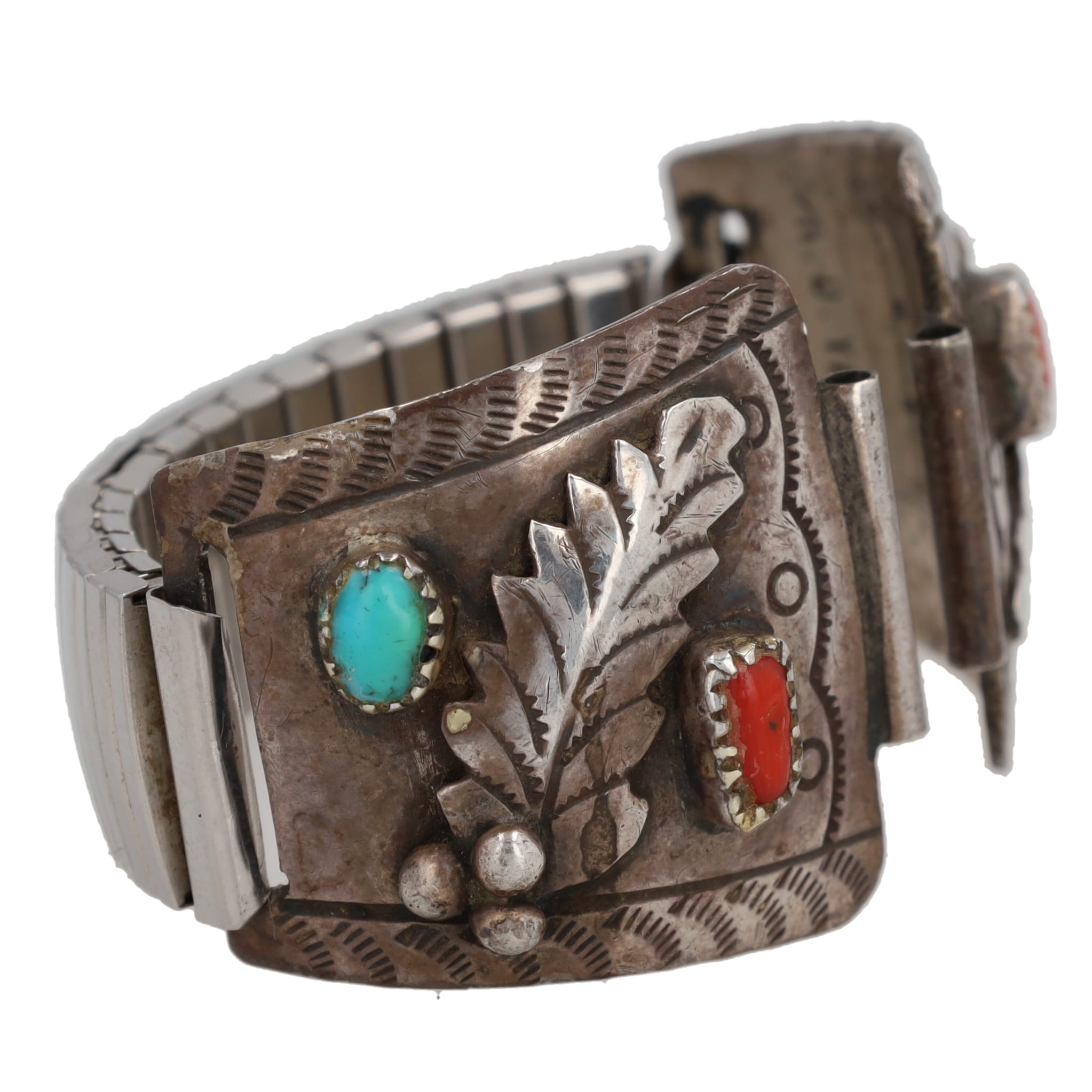 H.D. Yazzie Navajo Turquoise Coral Sterling Watch Nibs 37g