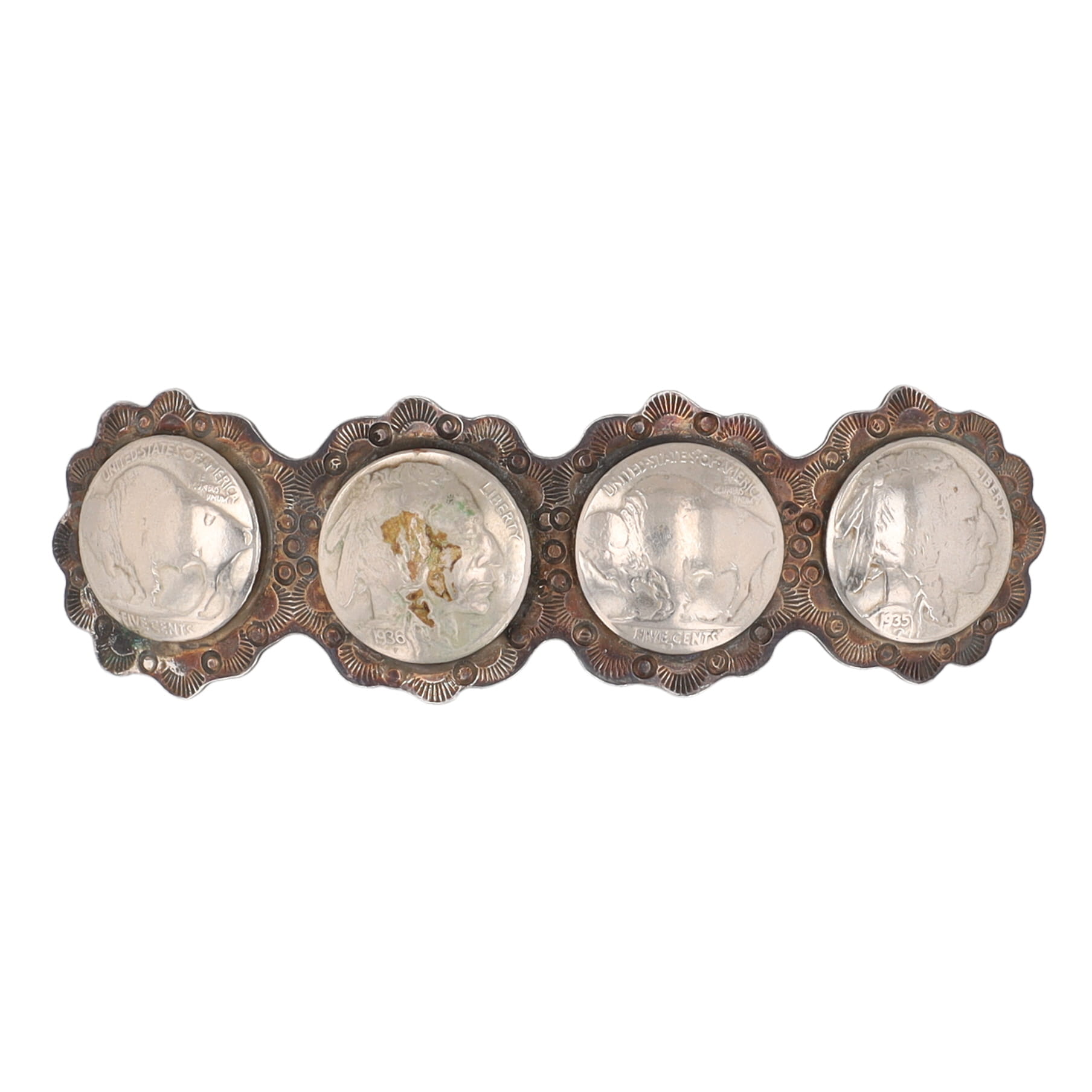 Lee Prince Cherokee Double Signed 1936/1935 Buffalo Nickel Hair Clip 49g