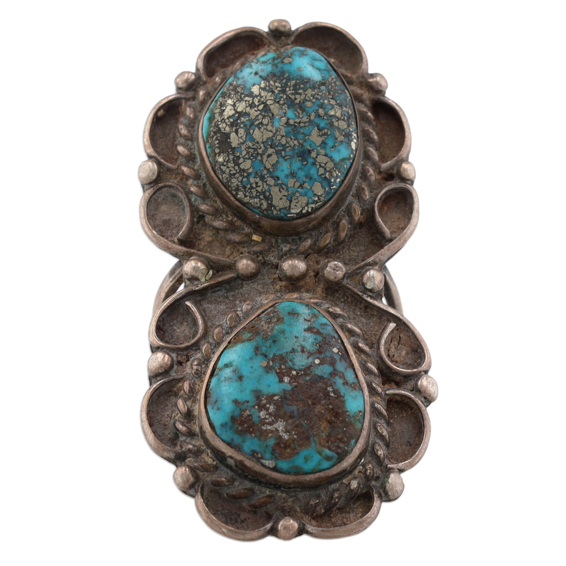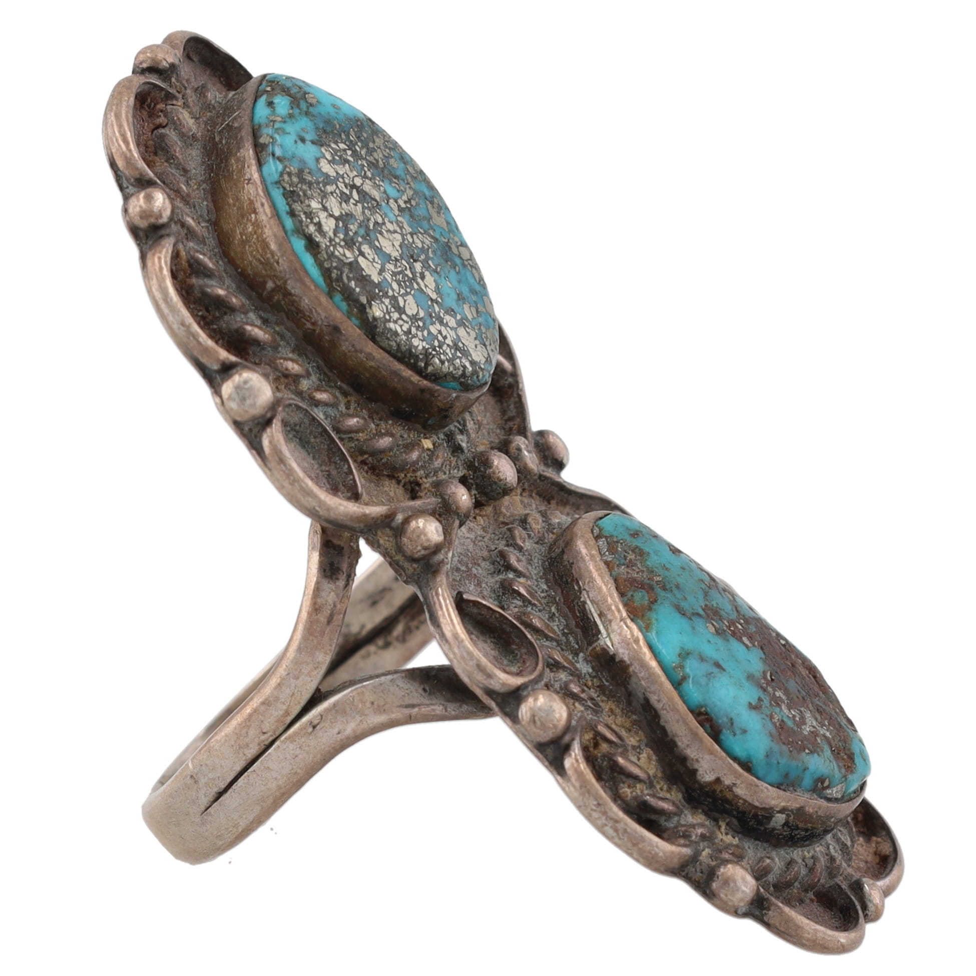 Vintage Navajo Morenci Turquoise Sterling Ring Sz 7.25, 11g