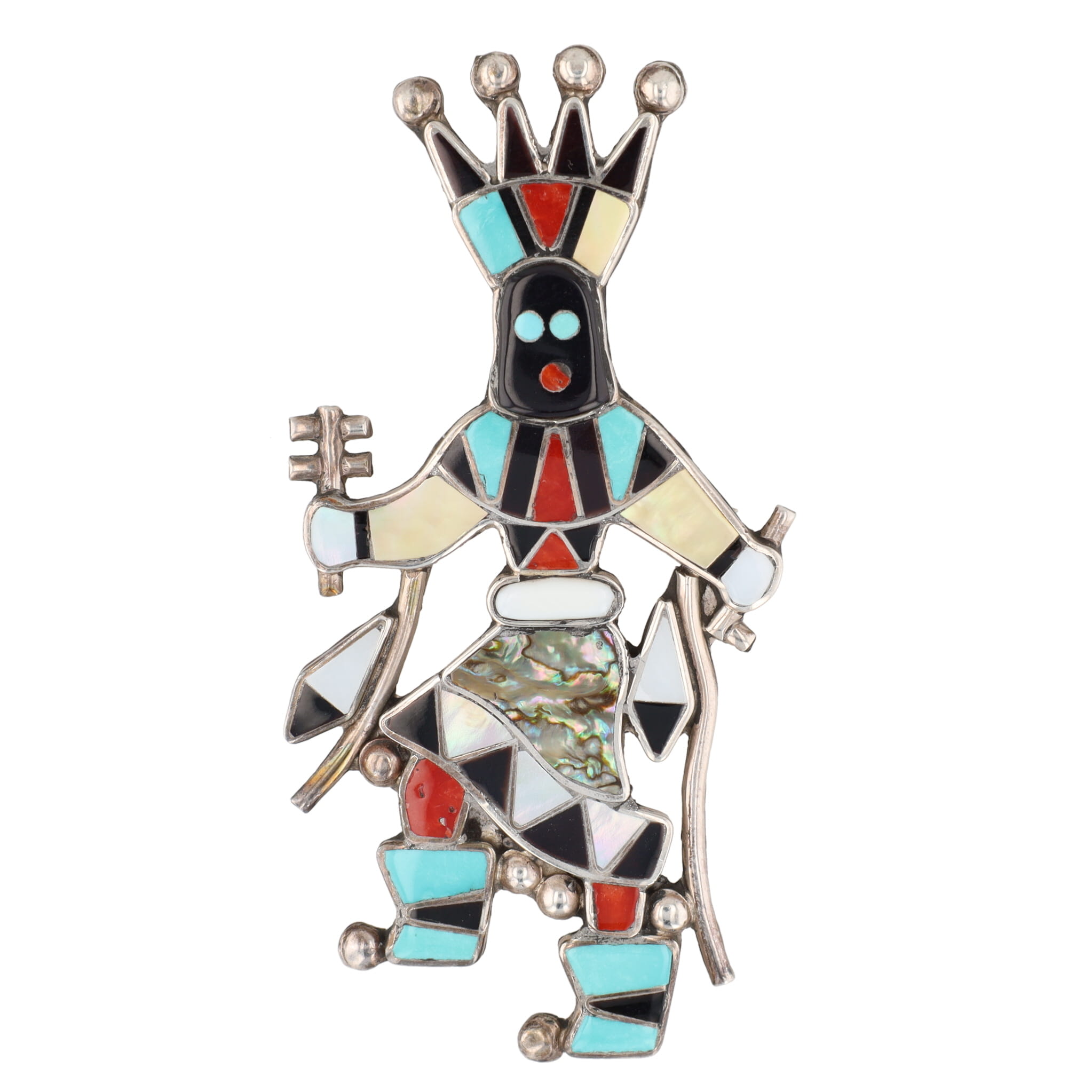 Linette Laiwakete Zuni Kachina Inlay Brooch Pendant 12.5g