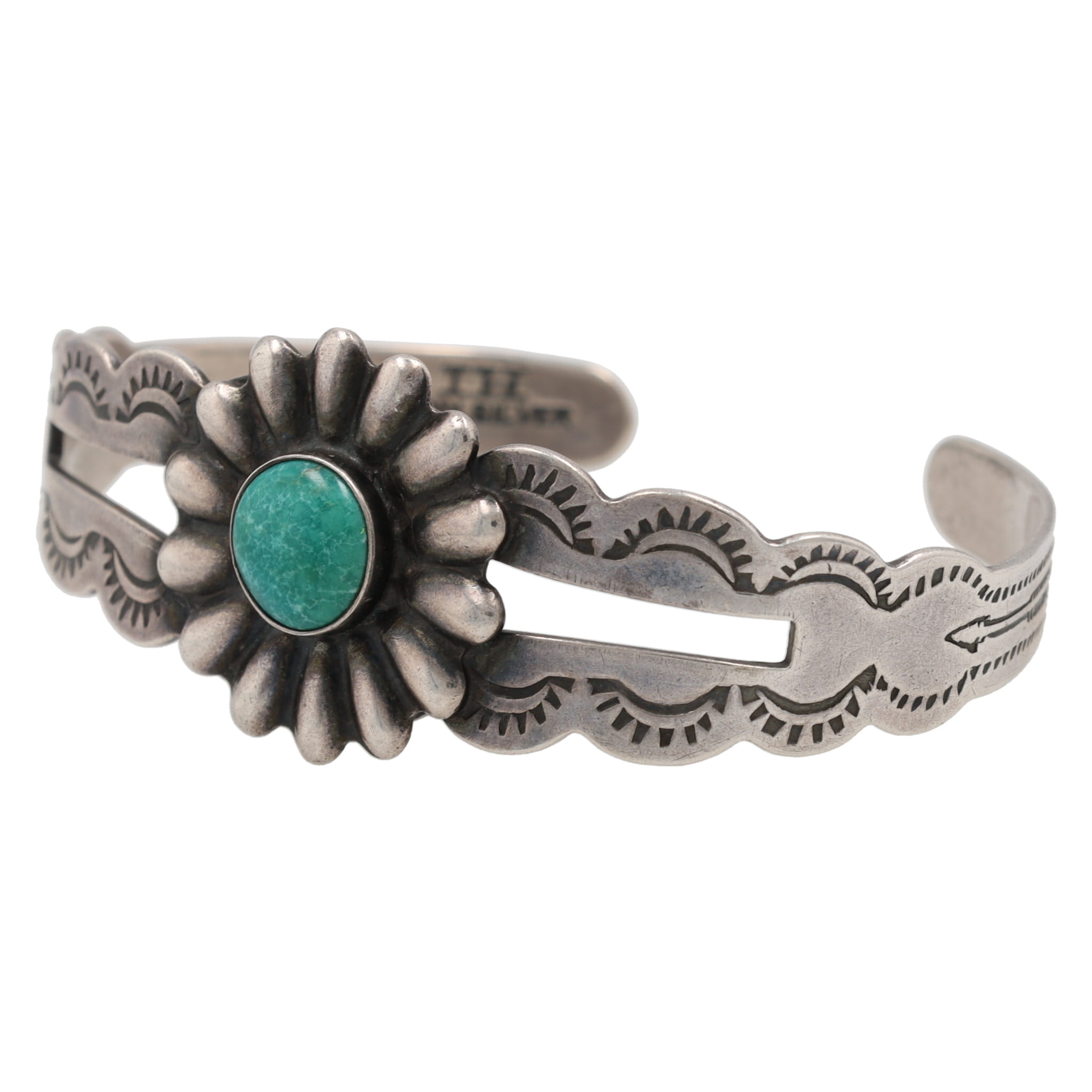 Indian Handcraft Shop Turquoise Sterling Stamped Cuff Bracelet 16g